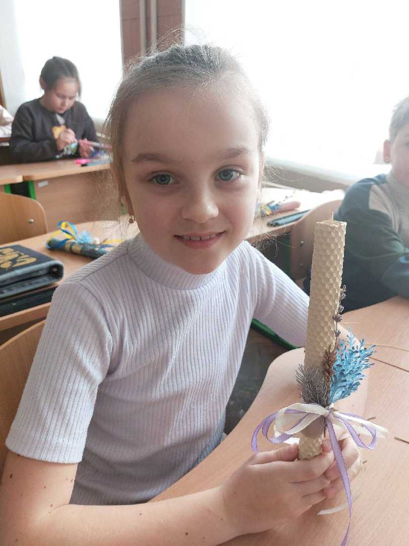 Напередодні свята Стрітення Господнього у шкільній родині 3-Б класу ( учитель Пшик Г.Я., асистент учителя Федорук О.П.)відбувся майстер-клас з виготовлення стрітенської свічки, який провела майстриня Світлана Пашковська. Тепло дитячих рук, запашна вощина, атмосфера творчості подарували школярам ще один незабутній день у школі. Віримо, що ці свічки стануть надійним оберегом для родин у важливі моменти життя.