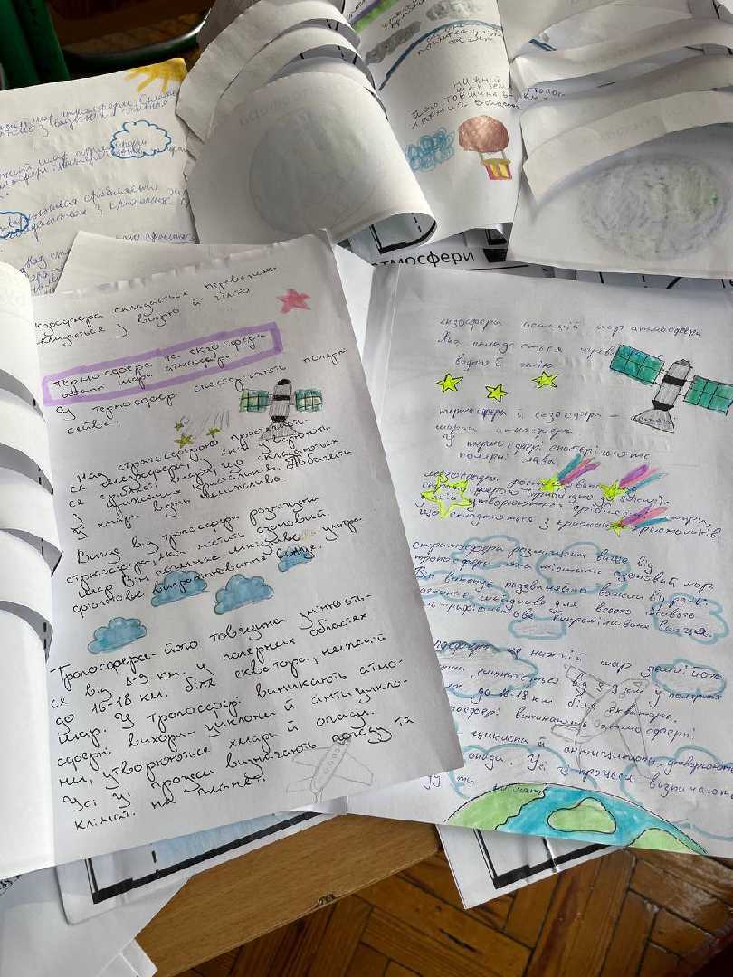 Під час проведення декади географії (учитель Мельник І.М.) учні 6-А класу працювали творчо і активно. Виготовляли лепбуки на тему "Склад і будова атмосфери". Учні закріпили та систематизували знання по даній темі. Досліджували, розгадували кросворди, захищали проєкти, виконували інтерактивні вправи у застосунку Wordwall. Виконуючи дослідницький проєкт, учні працювали у групах, використовували різні джерела інформації, проявили творчість і креатив.