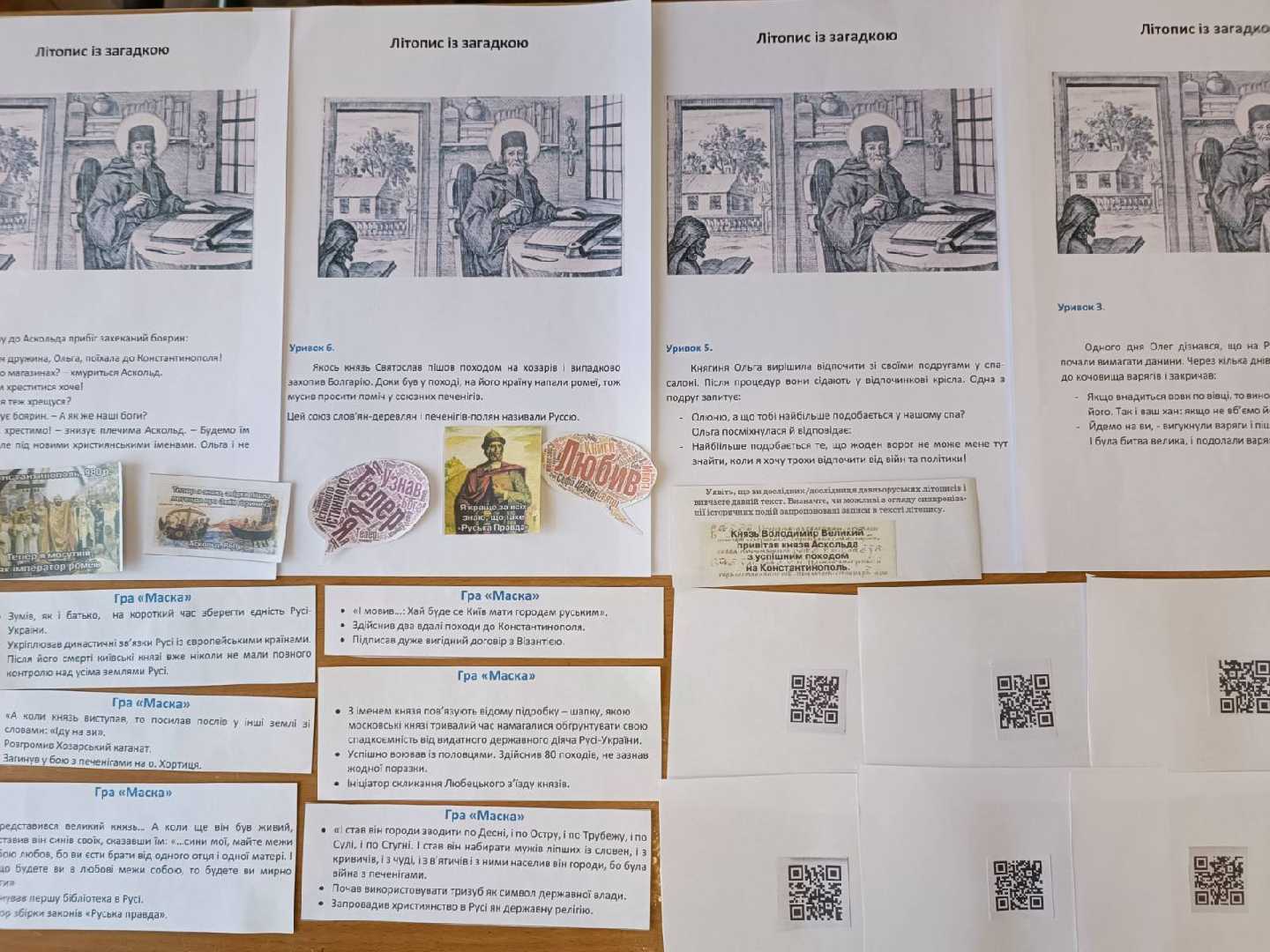 Під час предметної декади вчителька історії Ірина Василівна Шеремета провела в 7-Б класі історичну гру "Літопис із загадкою". Школярі виявляли критичне мислення, аналізуючи уривки літописів, досліджували історичні меми, хмаринки слів, визначали істинні твердження та фейки. Під час гри "Маска" діти впізнавали історичні особистості. Семикласники виконували інтерактивні завдання на сервісах LearningApps "Граючи - Навчаємося", Google - forms. Працюючи в групах, учні створили макети блогів про видатних князів Русі-України. Школярі розвивали вміння працювати в команді, допитливість , кмітливість, інтелектуальні навички.