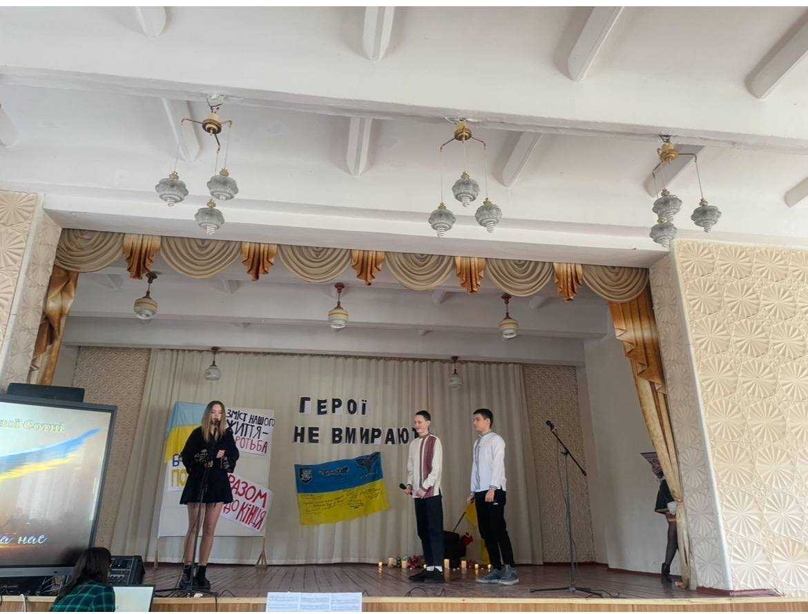 20 лютого учні 8-Г класу ( кл.керівник Пацалюк О.Д.) провели захід, щоб вшанувати пам’ять Героїв Небесної Сотні, активістів Майдану, які віддали своє життя, протестуючи проти намірів повернути країну під російське ярмо й позбавити її європейського майбутнього. Завдяки їхній жертві Україна здобула першу перемогу у битві, що триває й донині. Будьмо гідними їхньої пам’яті – захищаймо своє!