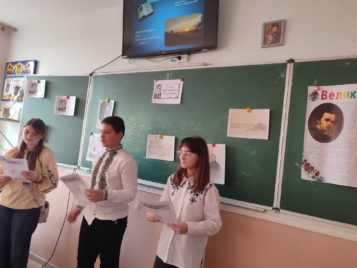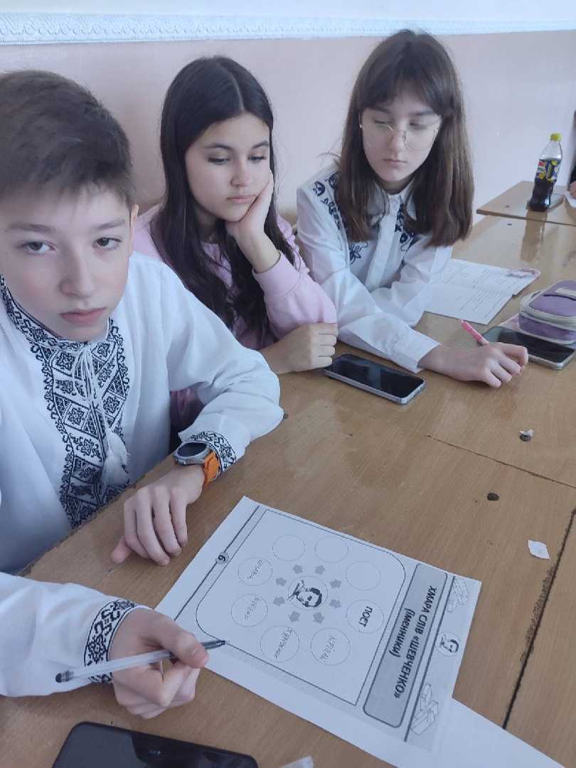 Учні 7-Г класу (учитель української літератури Скалецька Н.Б.) здійснили пізнавальну подорож життєвим і творчим шляхом Тараса Григоровича Шевченка. Діти виконували цікаві завдання, поглибили знання про долю поета, декламували вірші митця, розгадували ребуси, створювали асоціативний кущ, a також ознайомились із мистецьким доробком Кобзаря. Тарас Шевченко - духовний провідник українського народу, який своїм словом і пензлем допоміг прославити нашу націю, а його слово й сьогодні надихає нові покоління.