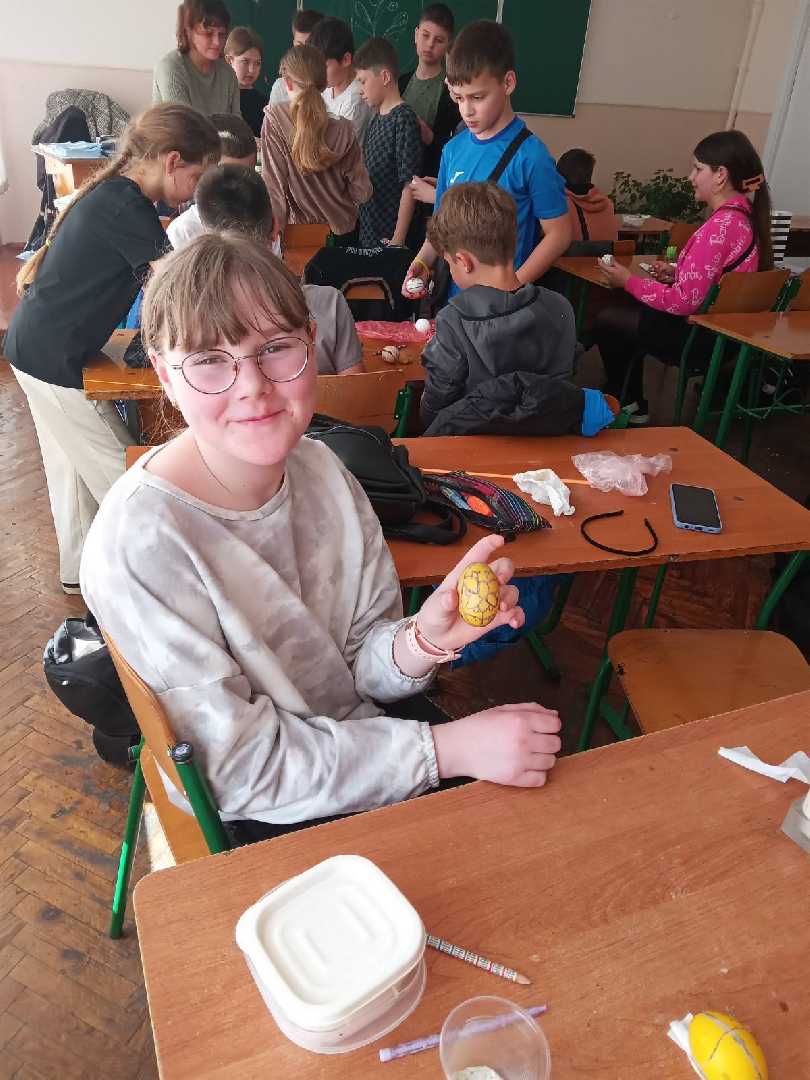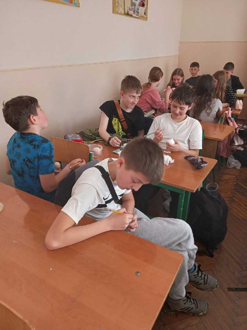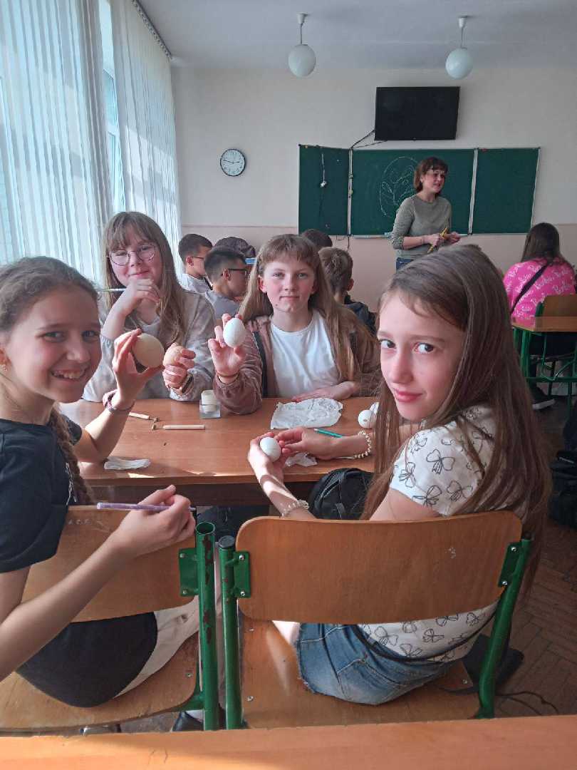17 квітня учні 6-В класу (класний керівник Кашицька Н.Й) поринули у чарівний світ створення писанки. Щиро дякуємо Ольга Костельна за створення особливої атмосфери свята. Учні мали змогу створити власні великодні писанки, дізнатися більше про традиційні символи, кольори й значення орнаментів. Діти заглибились у світ українських традицій та зробили красиву писанку власноруч!