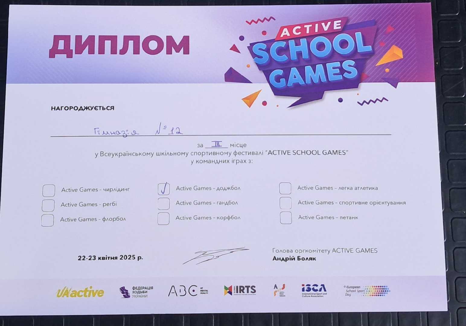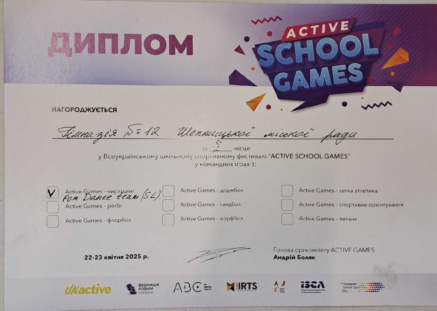 Емоції вівторка сприяли нашим чудовим результатам у середу. Сьогодні ми змагались у доджбол і петанк. Ну, і як без черліденгу. Виступ наших дівчаток був неперевершеним ! Ще раз дякуємо організаторам UkraineActive за відчуття азарту, руху, неймовірної енергії та можливість відчути себе частинкою великого спортивного свята. Такі події надихають займатися спортом, вести здоровий спосіб життя і просто отримувати задоволення від змагань та спілкування!