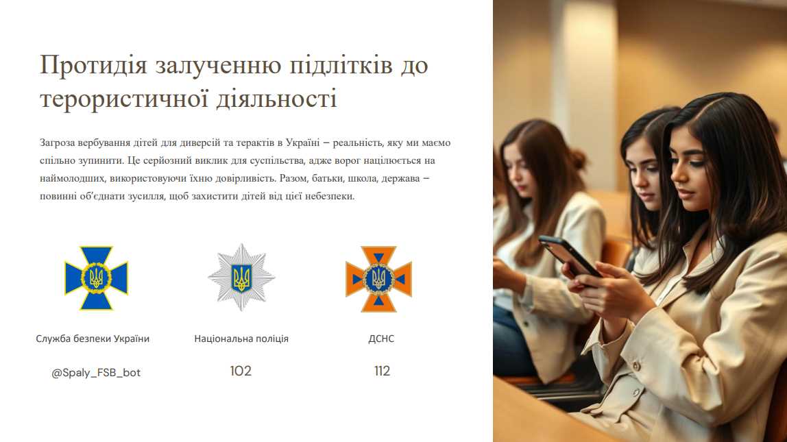 Психологічною службою, для підвищення рівня знань щодо проблем, повʼязаних з насильством з учнями 8-Г класу була проведена карткова ігрова методика «Коло безпеки» на тему «Загальні поняття про насильство». Учні розглянули основні форми та особливості насильства та жорстокого поводження з дітьми, а також запобігання йому.