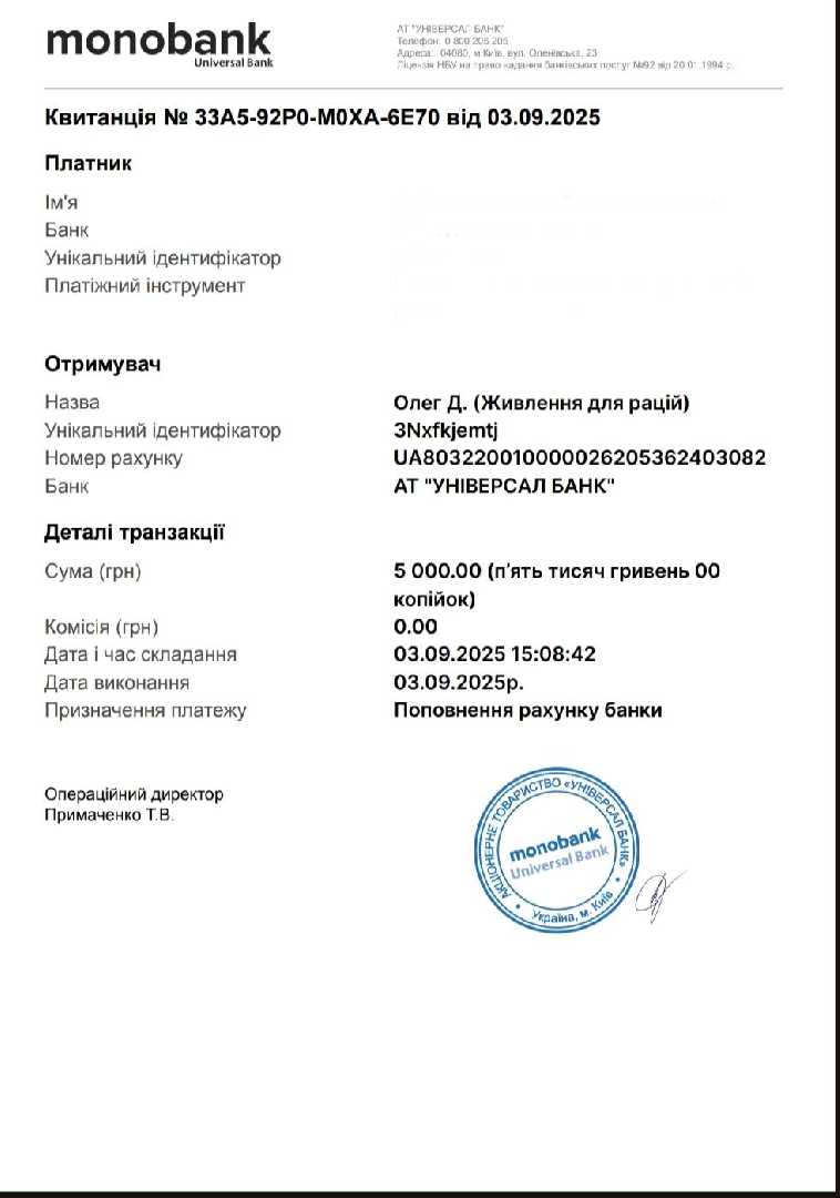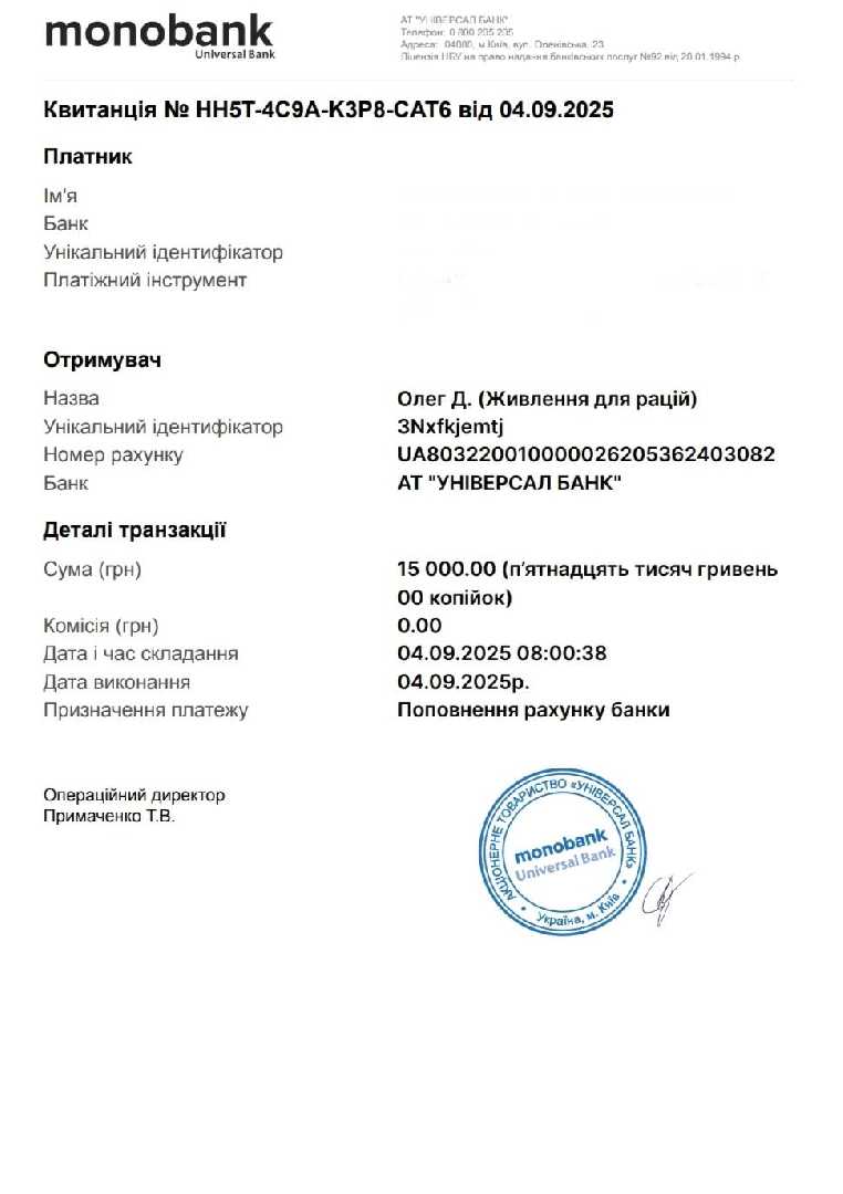 Зібрані кошти були передані на лікування Марка Гладиша (4 000 грн), на придбання живлення для рацій 63 Окремого Батальйону Сил ТрО (20 000 грн), на авто для підрозділу РЕР/РЕБ на Покровському напрямку ( 5 000 грн) . Разом ми творимо добро і допомагаємо тим, хто цього найбільше потребує.