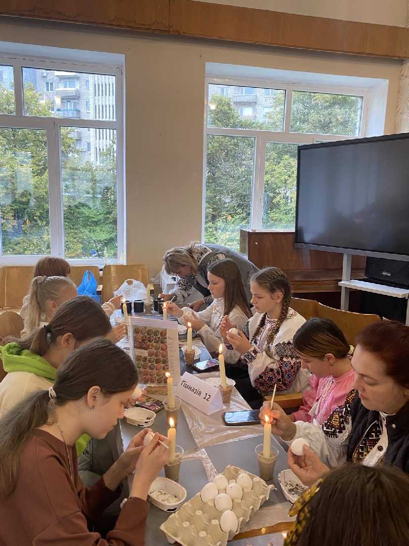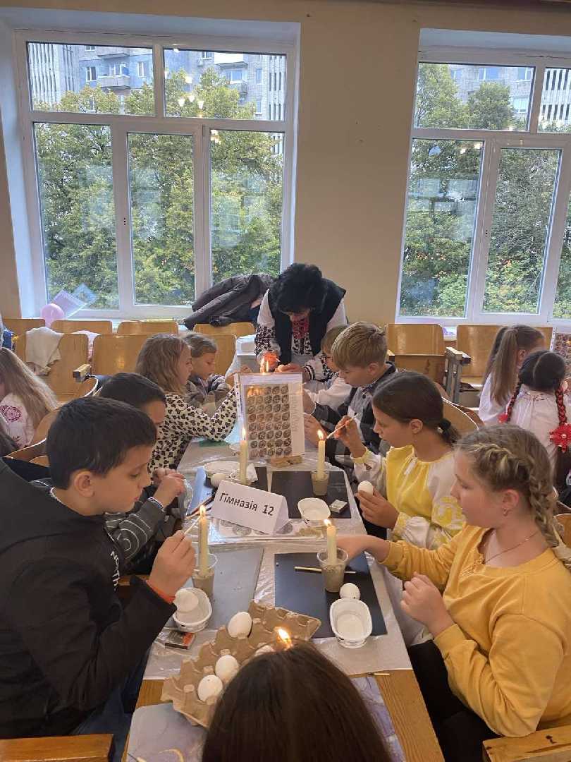 93 учні нашої гімназії разом з Гудим Л.С., уч. мистецтва, долучилися до встановлення Рекорду України з наймасовішого одночасного написання писанок у традиційній восковій техніці на видутому яйці в одній локації.