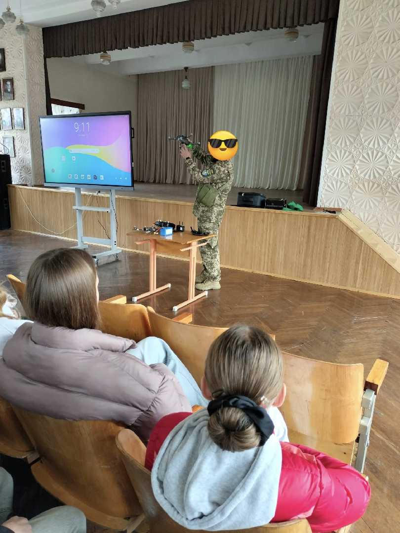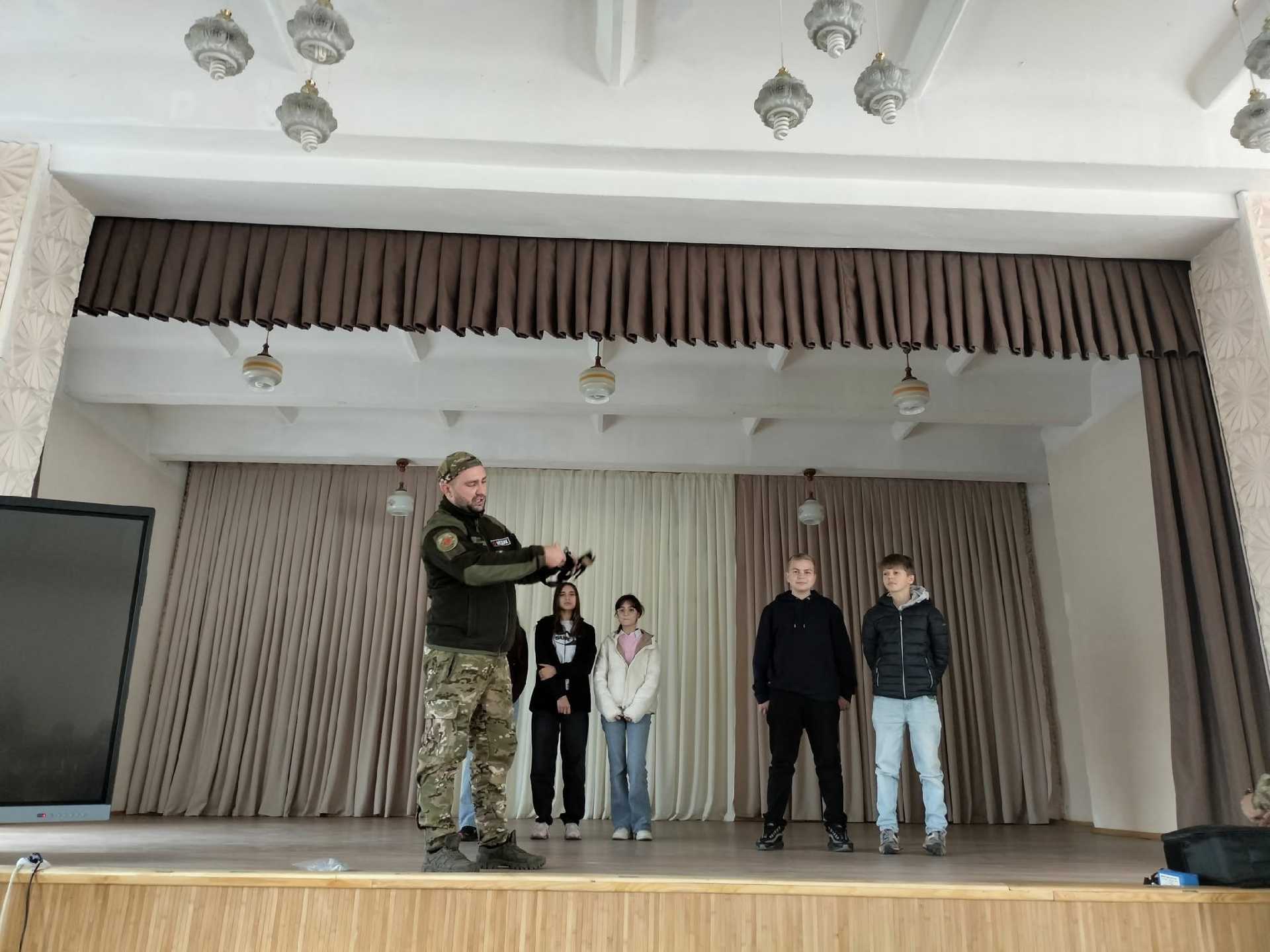 Сьогодні для учнів 8-х класів відбувся пізнавальний захід із воїнами. Під час зустрічі військові розповіли школярам про основи тактичної медицини, показали, як правильно накладати турнікет, наголосили на важливості елементарних знань з домедичної допомоги. Також школярів ознайомили з роботою безпілотних літальних апаратів та правилами безпечного поводження з БПЛА. Такі зустрічі допомагають усвідомити значення безпеки та готовності діяти в надзвичайних ситуаціях. Щиро дякуємо військовим за корисну інформацію та співпрацю! 1 окрема шляхо-відновлювальна бригада імені князя Лева Держспецтрансслужби