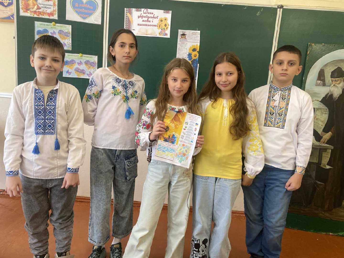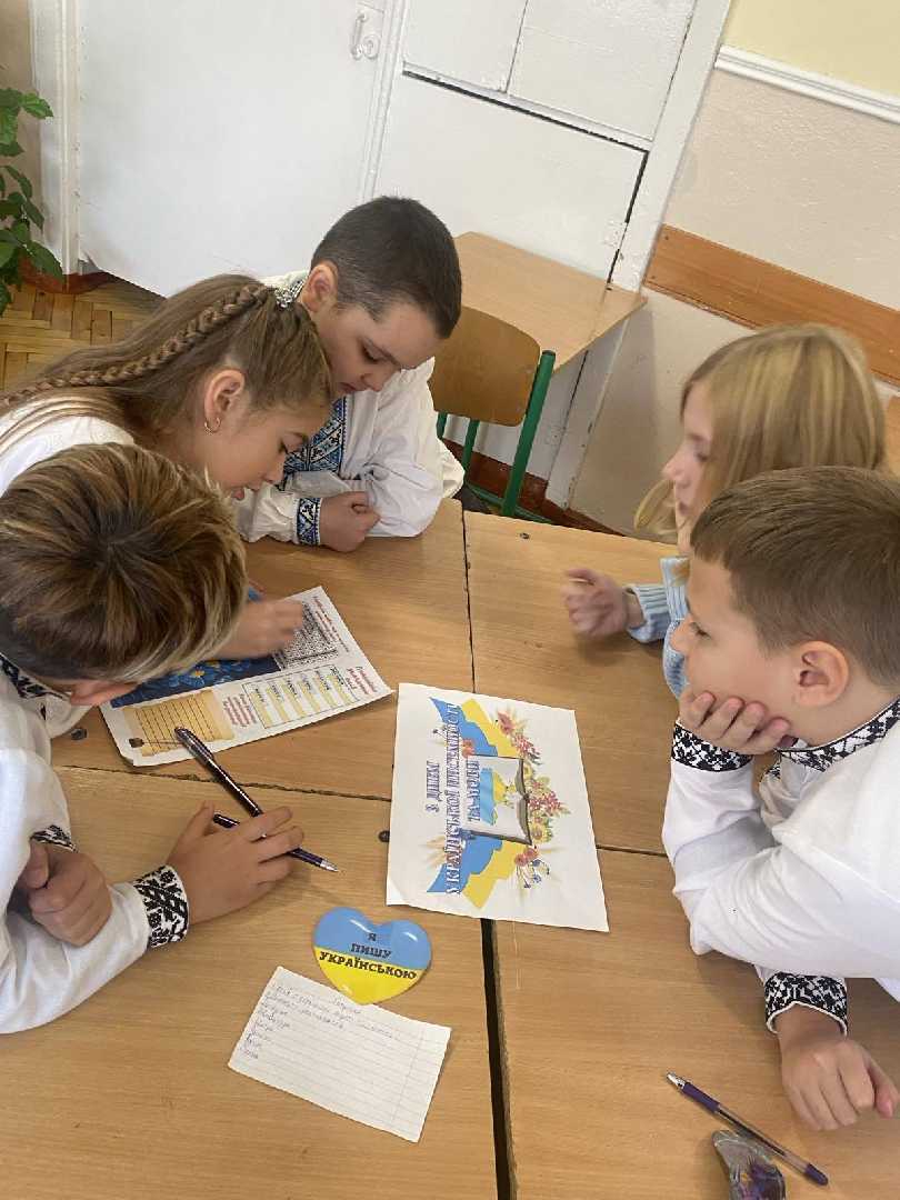 Милозвучність та краса української мови завжди є для нас невід’ємним та важливим елементом культури, духовним та інтелектуальним надбанням. Це глибоко усвідомлюють учні 5- Д класу (кл.кер. Малицька О. В.), які підготували до Дня писемності та української мови чудовий проєкт, присвячений красі й багатству рідної мови, показали свою творчість, старанність та любов до рідного слова. П’ятикласники з цікавістю слухали розповідь про Нестора Літописця, який дав початок писемній українській мові; записали прислів’я та приказки про рідну мову; складали сенкани; зробили мінідослідження про походження українських слів; розгадували ребуси; записували цікаві факти про мову, афоризми; складали слова; створили яскравий плакат із твердженнями берегти і плекати рідну мову. “Мова — це те, що нас об’єднює!» — з гордістю казали учні. Дякуємо героям, що захищають нашу мову, нашу памʼять, нашу історію!