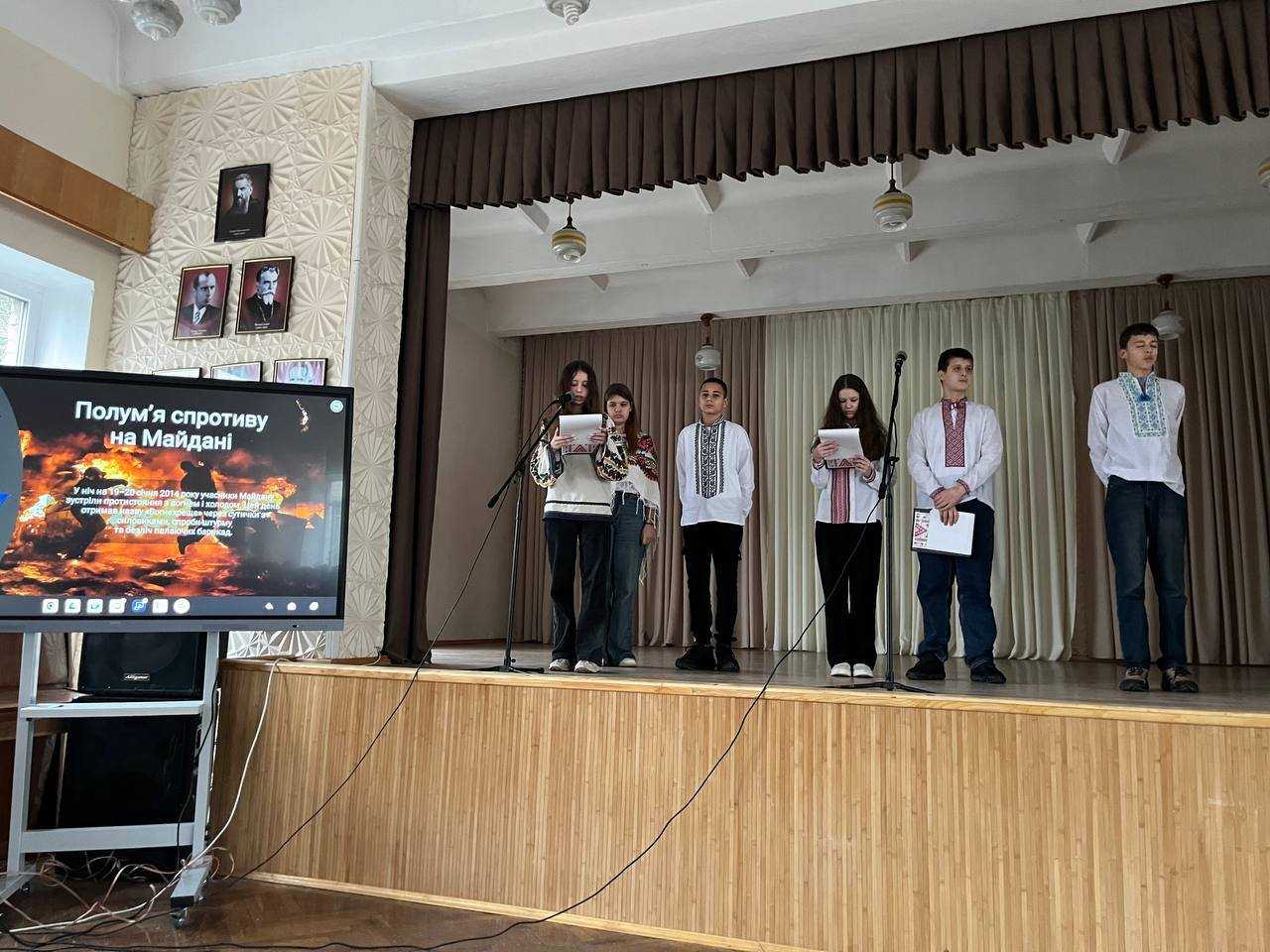 Учні 8-В класу (кл. керівник Мельник І. М.) провели захід до Дня Гідності і Свободи. Це день, коли ми згадуємо тих, хто виборював право бути вільними — словом, серцем і власним життям. Ми й надалі продовжуємо відстоювати гідність і свободу, бо саме вони формують нашу націю – сильну і незламну. Дякуємо й пам’ятаємо всіх українців і українок, які віддали своє життя за цінності свободи і демократії.