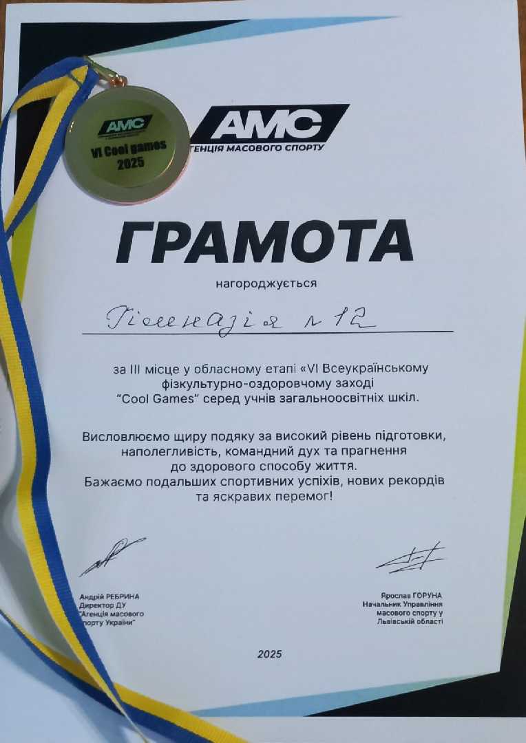 Вітаємо команду нашої гімназії із зайнятим ІІІ місцем у обласному етапі "ІV Всеукраїнського фізкультурно-оздоровчого заходу "Сооl Games" ( уч. Меда Л.В.).