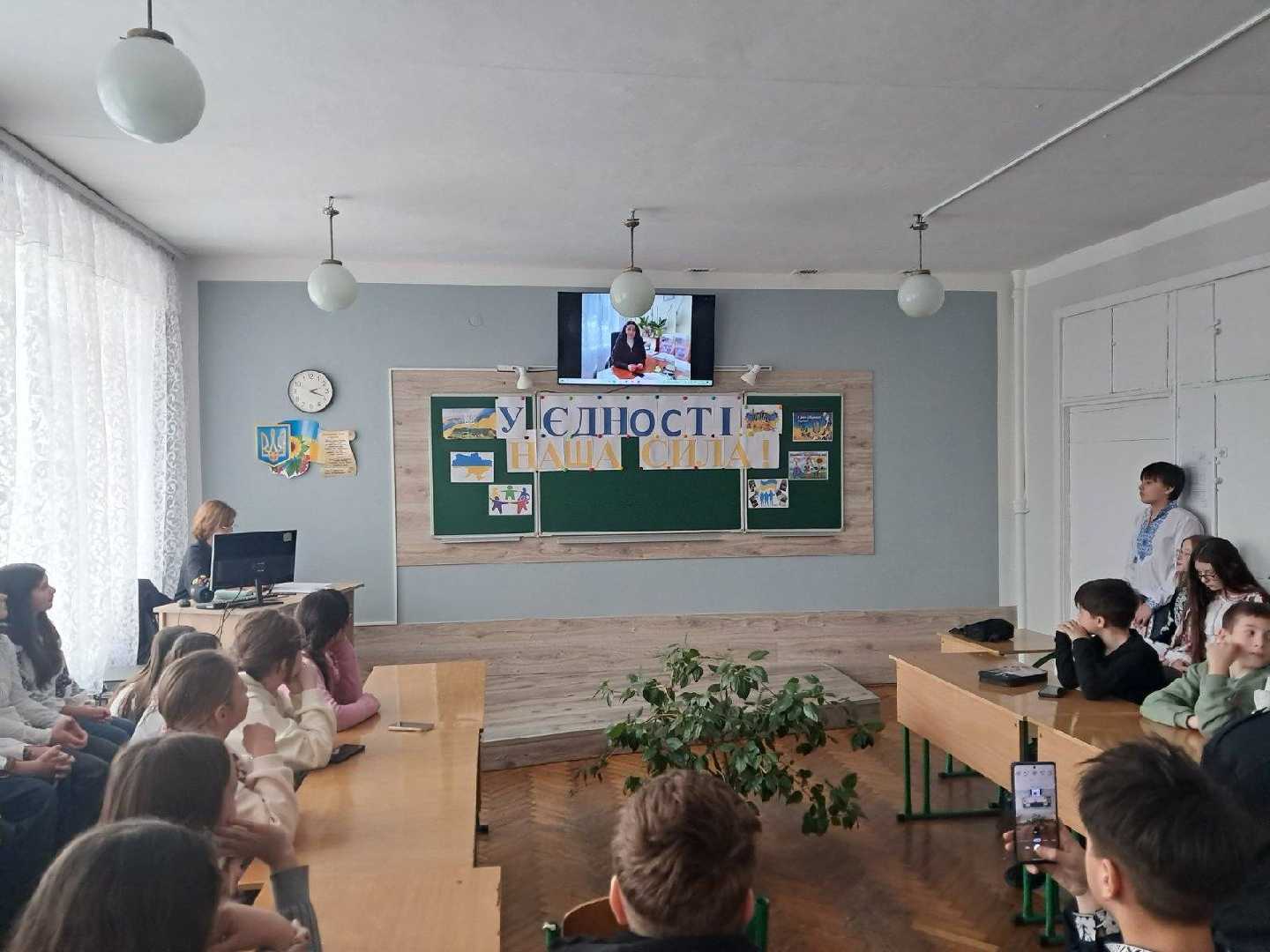 З нагоди Дня Соборності України учні 7-А класу (класний керівник Шеремета І.В.) провели захід «У єдності наша сила!». Учасники вшанували хвилиною мовчання пам’ять захисників, які виборюють право України бути єдиною та незалежною. Діти розповіли історію проголошення Акта Злуки Української Народної Республіки та Західноукраїнської Народної Республіки 22 січня 1919 р., переглянули документальні кадри про ці події. Одним із найчуттєвіших моментів нашого заходу став перегляд спеціального відеопроєкту «Що для вас означає соборність України?». Учні та вчителі нашої Гімназії поділилися своїми щирими думками. Ці роздуми вкотре довели: незважаючи на різницю у віці чи вподобаннях, ми маємо спільну мету — вільну, соборну, сильну Україну. Пам’ятаймо: коли ми тримаємося за руки — ми непереможні!