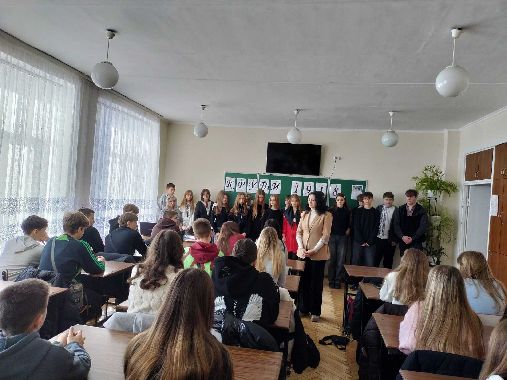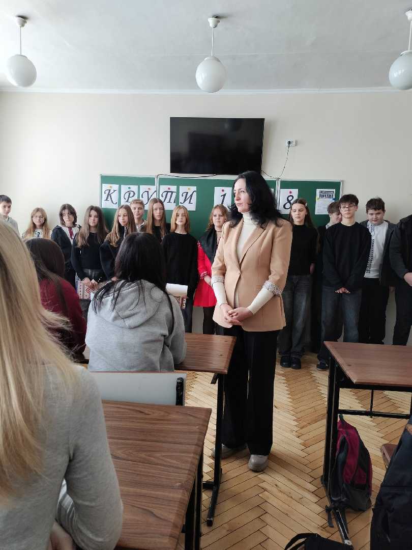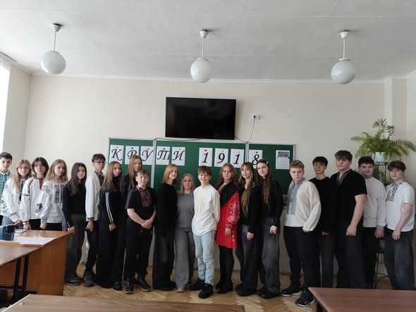 Сьогодні учні 8-А класу (кл.кер. Пиріг І.В.) нагадали нам про важливі й трагічні сторінки нашої історії — День пам’яті героїв бою під Крутами. Під час заходу ми провели паралелі із сьогоденням та наголосили: у всі часи саме молодь була і залишається рушійною силою суспільних змін в Україні. Юні, сміливі, свідомі — такими були герої Крут, такими є й наші захисники сьогодні. Пам’ятаючи минуле, ми краще розуміємо теперішнє і впевненіше дивимось у майбутнє.