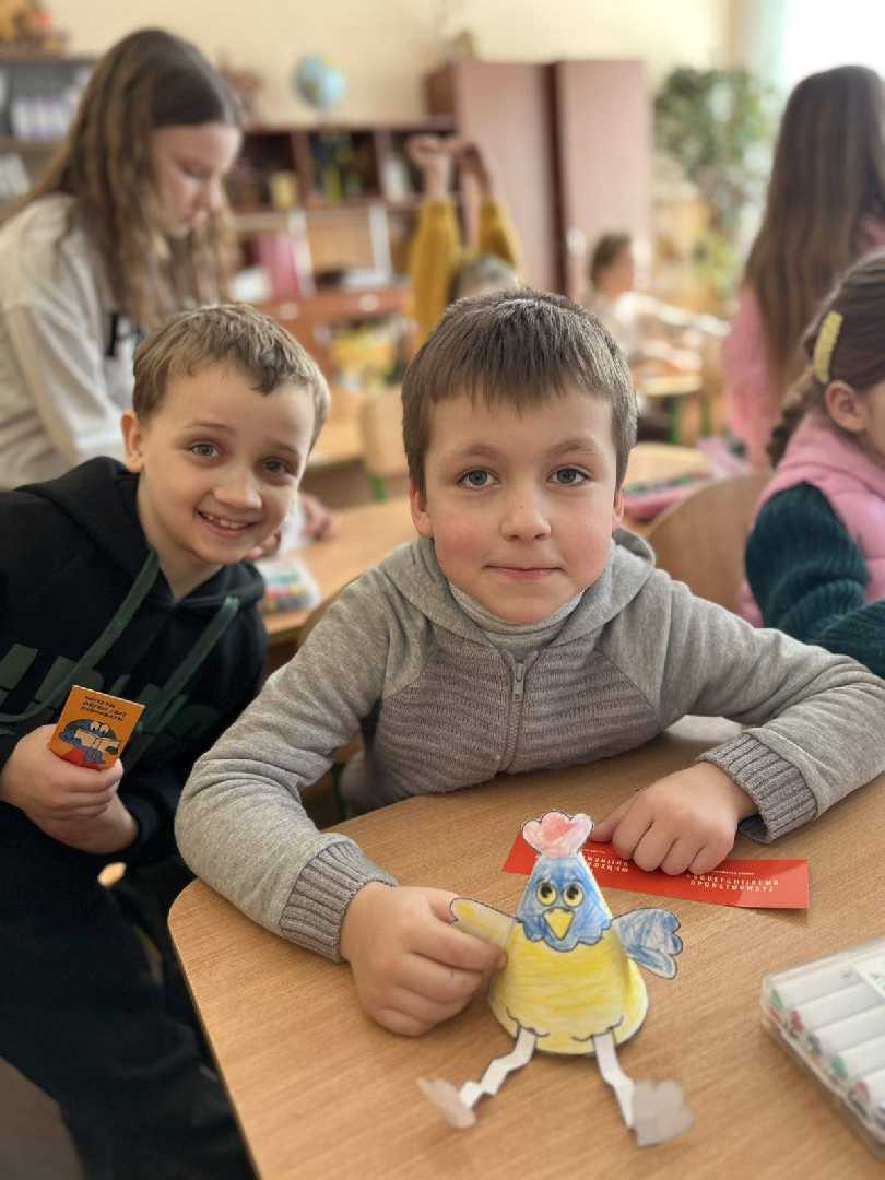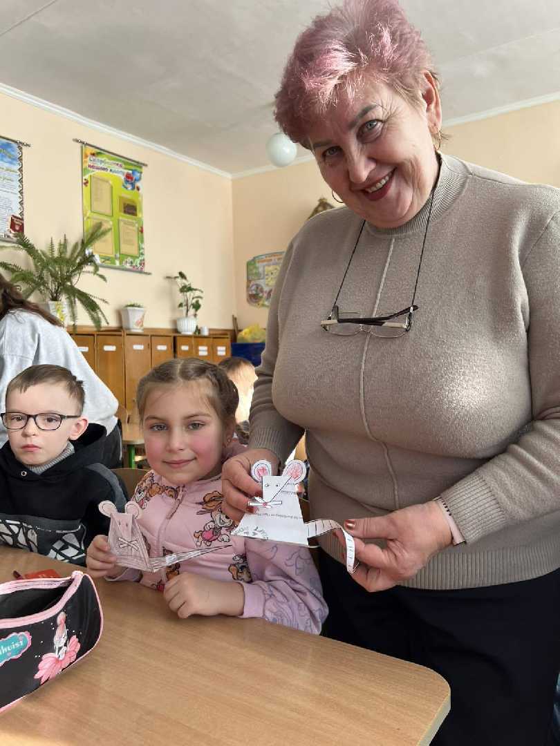 Нарешті учні 1-Б класу ( учитель Бац В.І. асистент Клебан Л.О.) мали надзвичайну казкову зустріч з шкільною бібліотекою. Спочатку Людмила Федорівна прочитала діткам повчальну казку " Півник та двоє мишенят", потім разом з помічниками, учнями 6- Б класу (Аня, Таня та Оленка) створювали півника та мишку. Першокласники дуже старались, були активними.