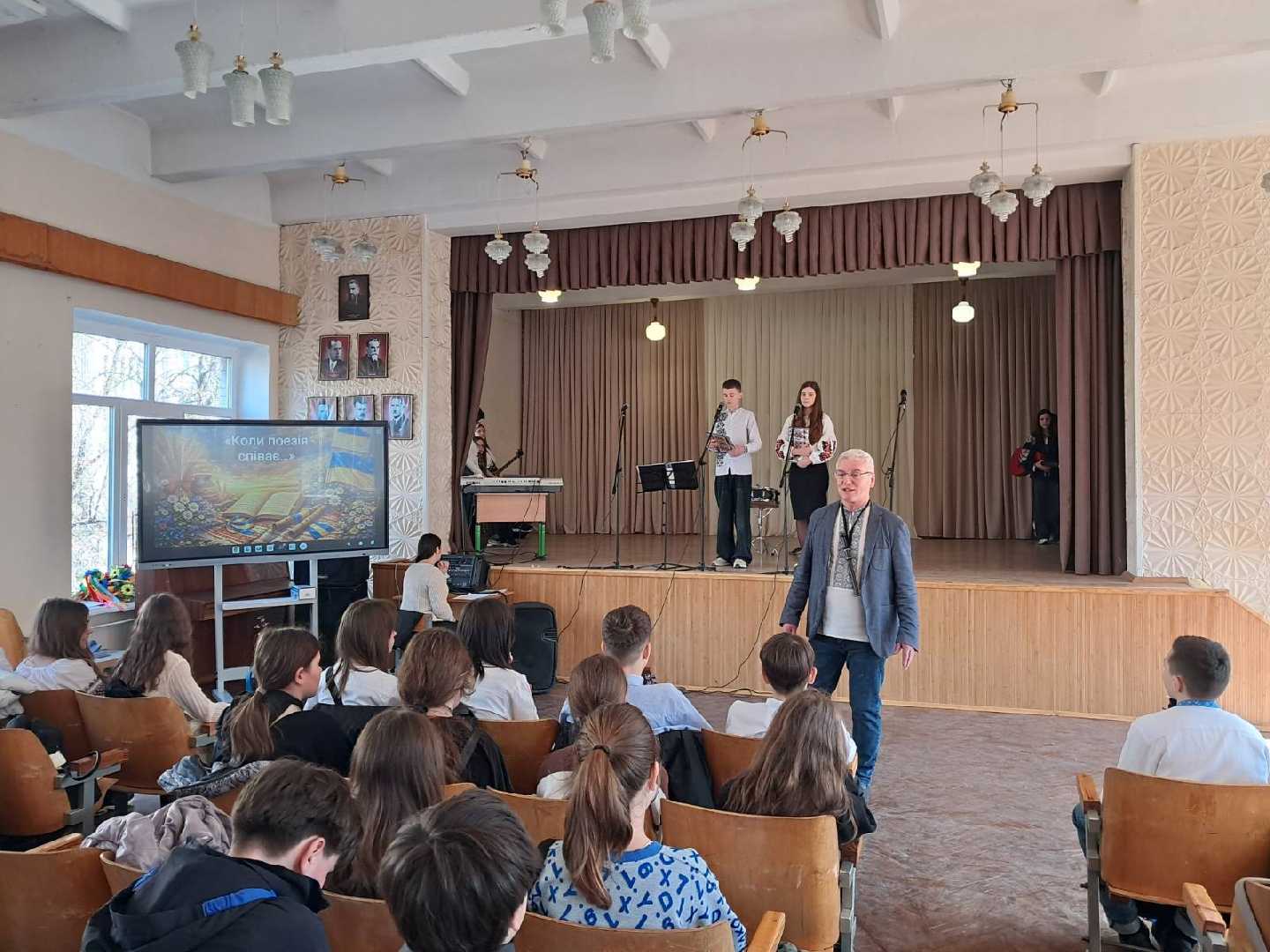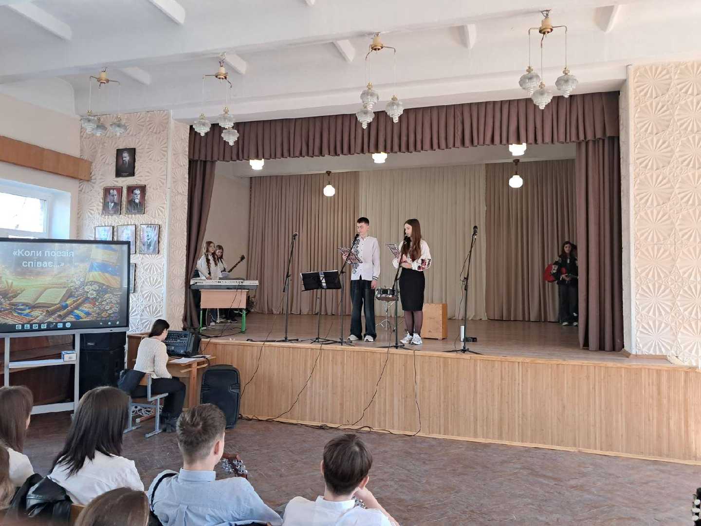 Сьогодні у нашій школі відбувся пісенно-поетичний захід «Коли поезія співає», який підготувала учитель української мови і літератури Плугова Н.В. Учасники ансамблю «Троїсті музики» (кер. Чобонян В.) дарували нам неповторні мелодії, виконуючи пісні на вірші Тараса Шевченка, Івана Франка та Лесі Українки. Зал тепло приймав артистів, атмосфера була сповнена спокою та щирих емоцій, а відомі пісні школярі охоче підспівував разом із учнями та гостями. Щира подяка нашим юним талантам за чудове свято мистецтва та поезії!