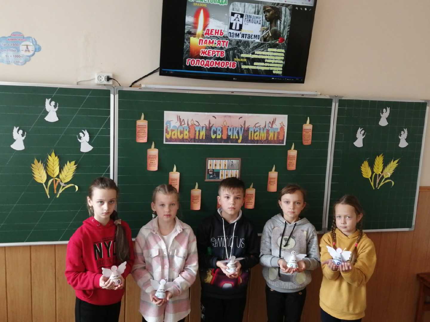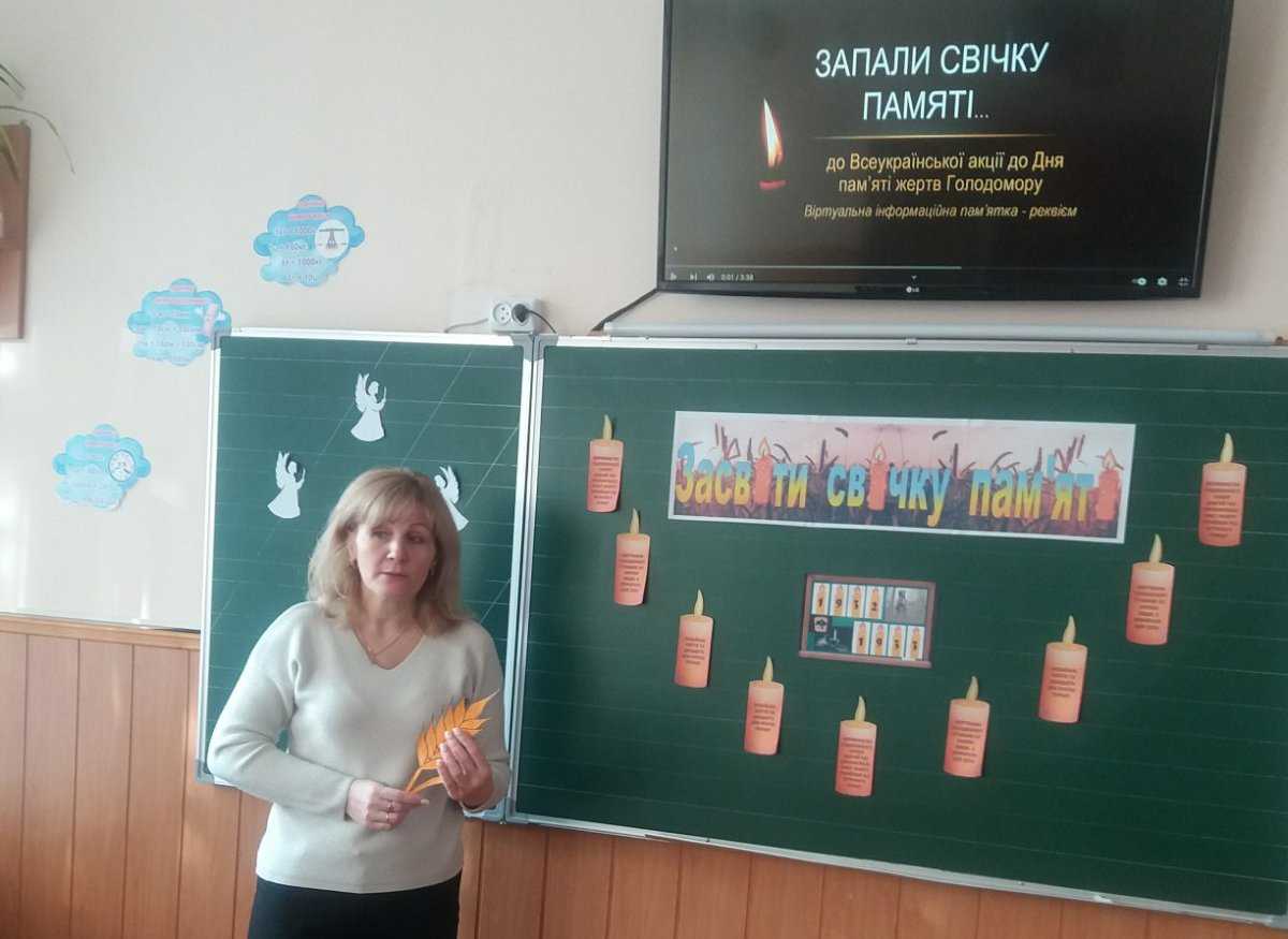 Учні 4-В класу ЧЗШ №12, класовод Харкевич Ірина Дмитрівна разом з шкільним бібліотекарем провели задушевну бесіду про страшні часи голодомору 1933 року, Людмила Федорівна організувала книжкову виставку: " То був страшний навмисний голод", а також зачитала вірші Антоніни Листопад про дітей, які пережили голод. Вчитель оформила клас відповідно до тематики й показала відео...загалом діти долучились до обговорення і навіть принесли монету приурочину цій темі...Учні пообіцяли цінувати хліб, пам'ятати про невинно убієнних а також запалити свічку пам'яті...