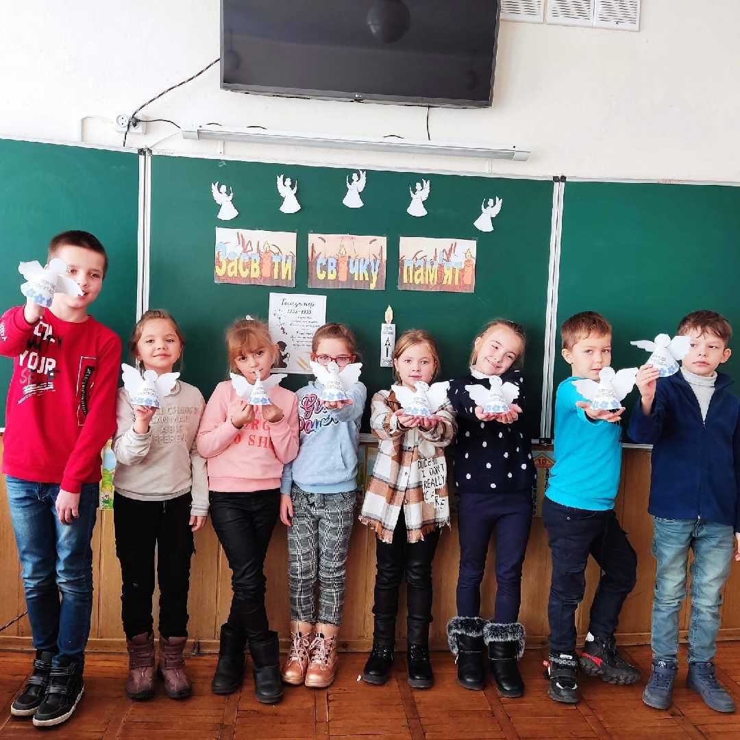 Учні 2-Г класу ЧЗШ №12 (учитель Єдинак О.І.) до Дня пам'яті жертв Голодомору самостійно виготовили символічних ангеляток та долучилися до акції "Незабудка пам'яті".