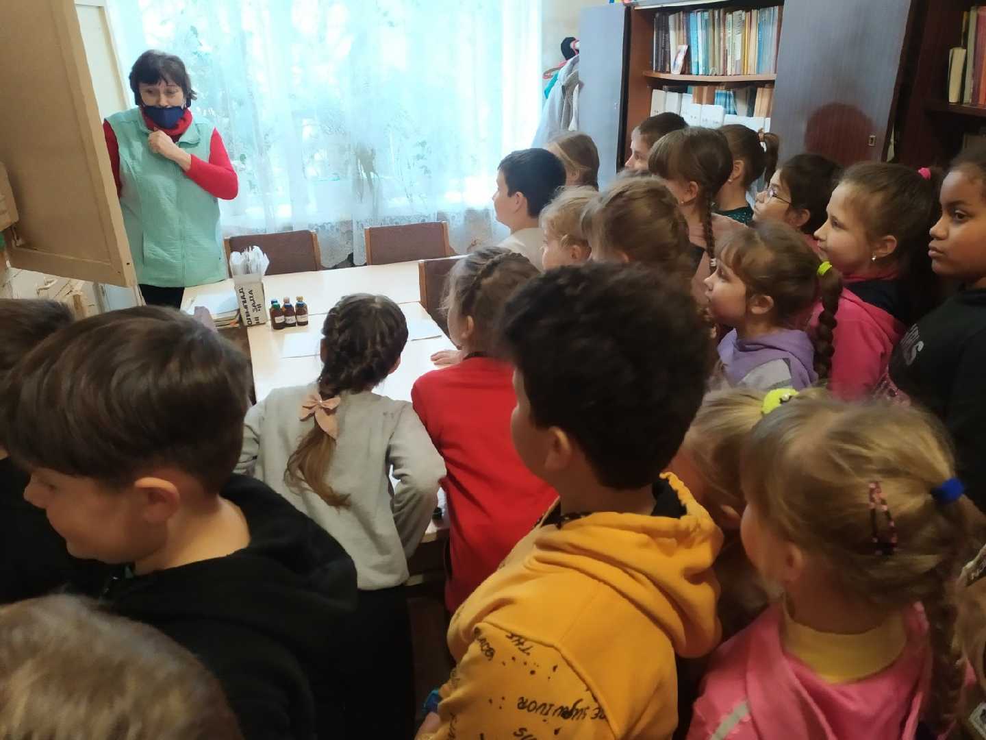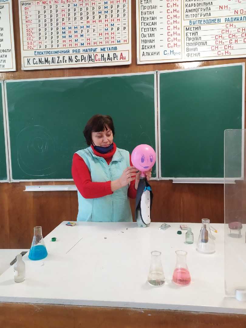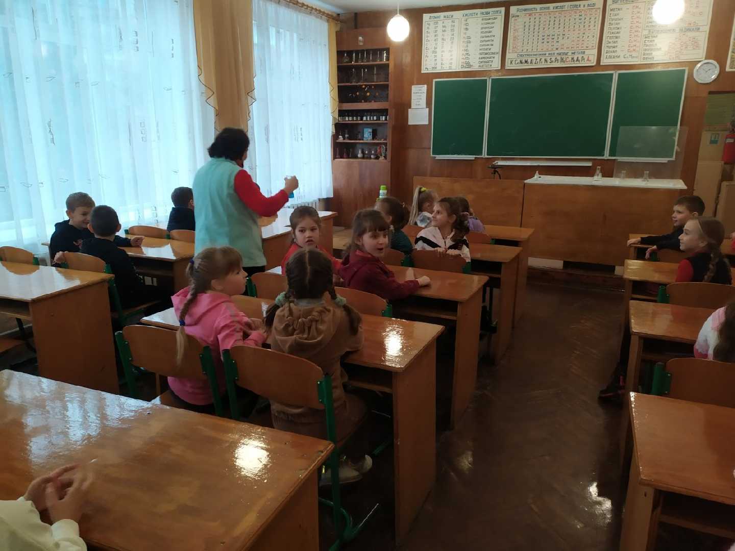 Шкільний лаборант Качмар Г. О. з радістю зустріла юних дослідників, показала лаборантську, безліч пробірок , розчинів, продемонструвала досліди. Як справжній чарівник, перетворила звичайну водичку на солодку, а потім на молоко.