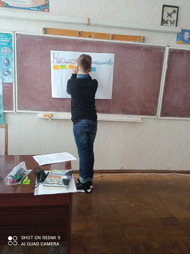 Психологічною службою, для підвищення рівня знань щодо проблем, повʼязаних з насильством з учнями 8-Г класу була проведена карткова ігрова методика «Коло безпеки» на тему «Загальні поняття про насильство». Учні розглянули основні форми та особливості насильства та жорстокого поводження з дітьми, а також запобігання йому.