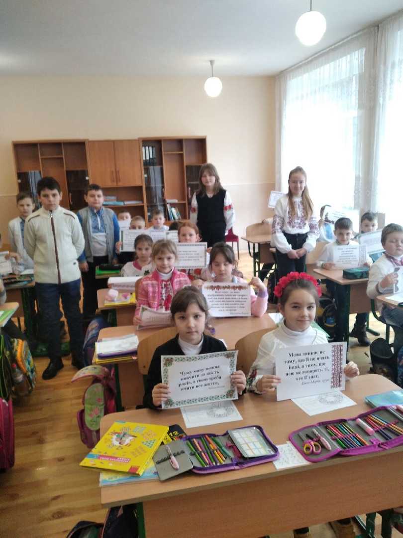 Учні 5-В (учитель української мови Плугова Н.В.) і 1-В (учитель Богуцька Л.В.) класів вшанували Міжнародний день рідної мови висловами про красу та багатогранність української мови. Адже, коли лунає рідне слово з уст наймолодших українців, є велика впевненість, що житиме і процвітатиме українська нація.