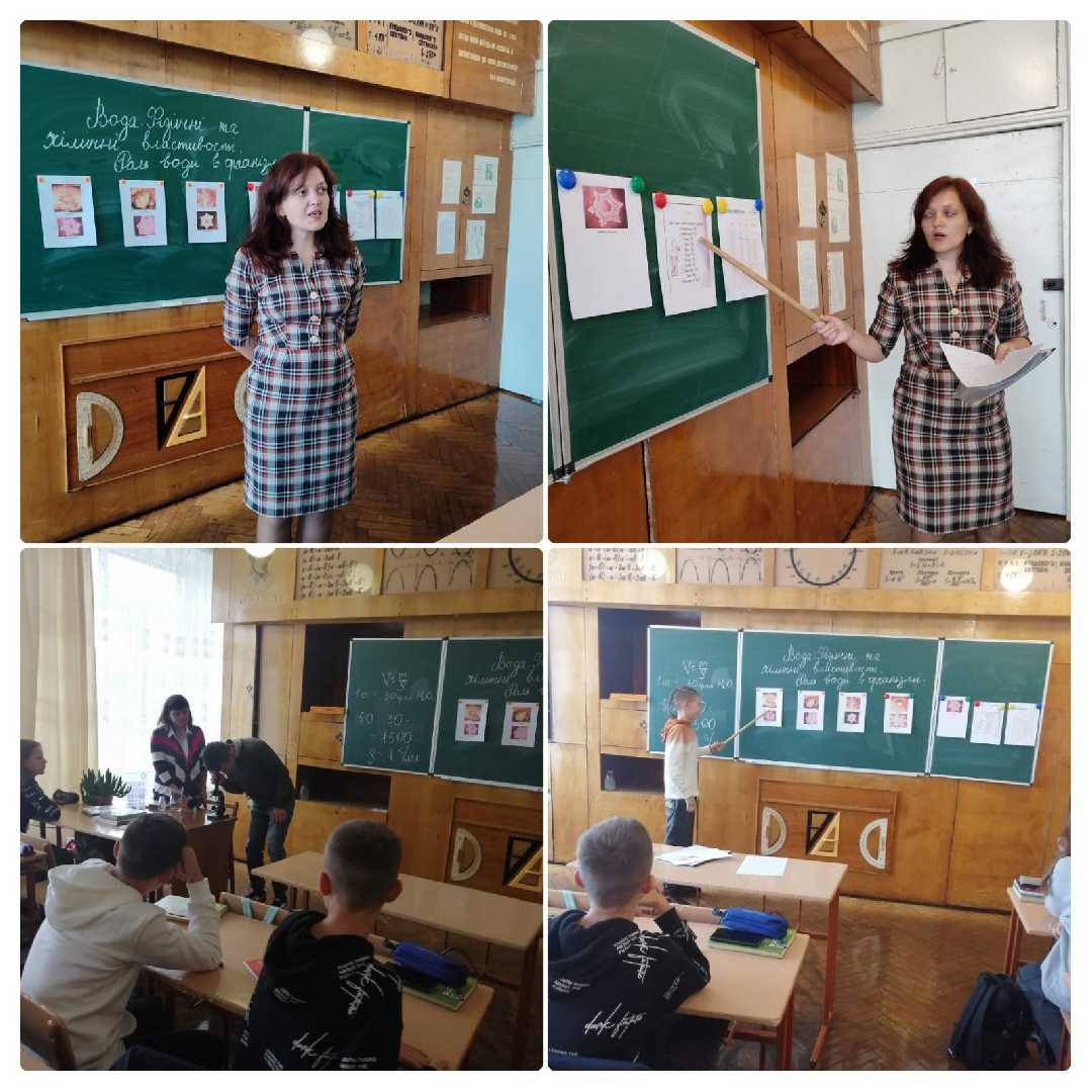 12 вересня у 8-В класі Гімназії №12 відбувся бінарний урок з хімії та біології "Вода. Її хімічні та фізичні властивості. Роль води в функціонуванні організмаів" під керівництвом вчителя хімії Мацях Наталії Романівни та вчителя біології Романчук Марії Іванівни. Діти ознайомилися зі способами фільтрування води, побачили наочно, як це зробити за допомогою піску. Спостерігали різні форми кристалів в залежності від енергетичного впливу на воду. Оцінили ступені ризику при зневодненні. А також порівнювали під мікроскопом дистильовану та просту воду.