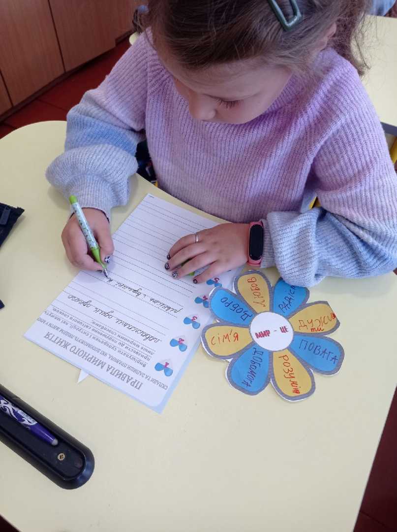Мир - головна цінність для будь-якої людини. З нагоди Міжнародного дня миру в 2 - Г класі (учитель Ткачук І.В.) пройшла тематична ранкова зустріч " Ми хочемо жити в мирі!" Учні ознайомилися з історією цього дня, з допомогою вчителя складали правила мирного життя, висловлювали свої думки про те, що для них мир.
