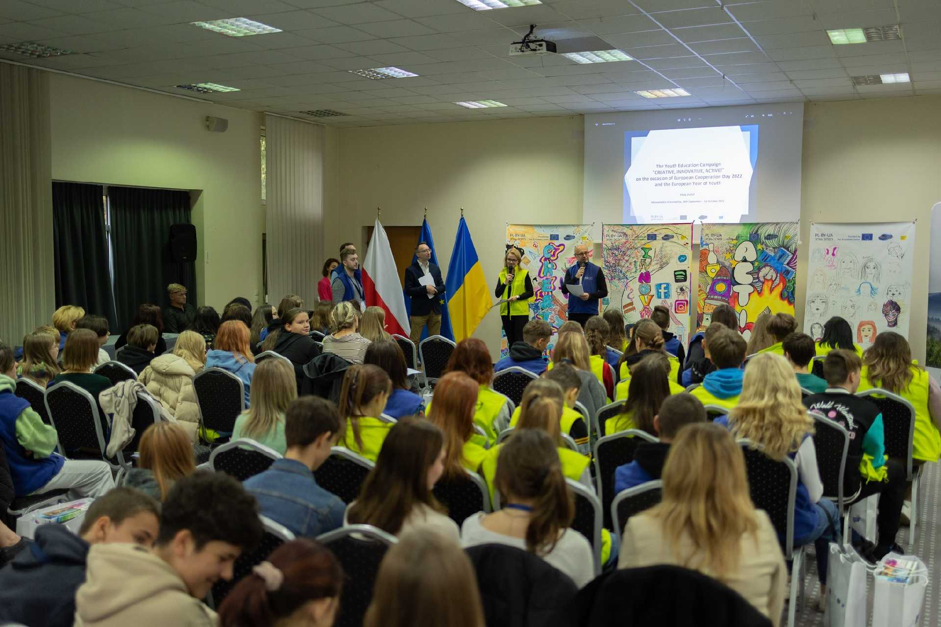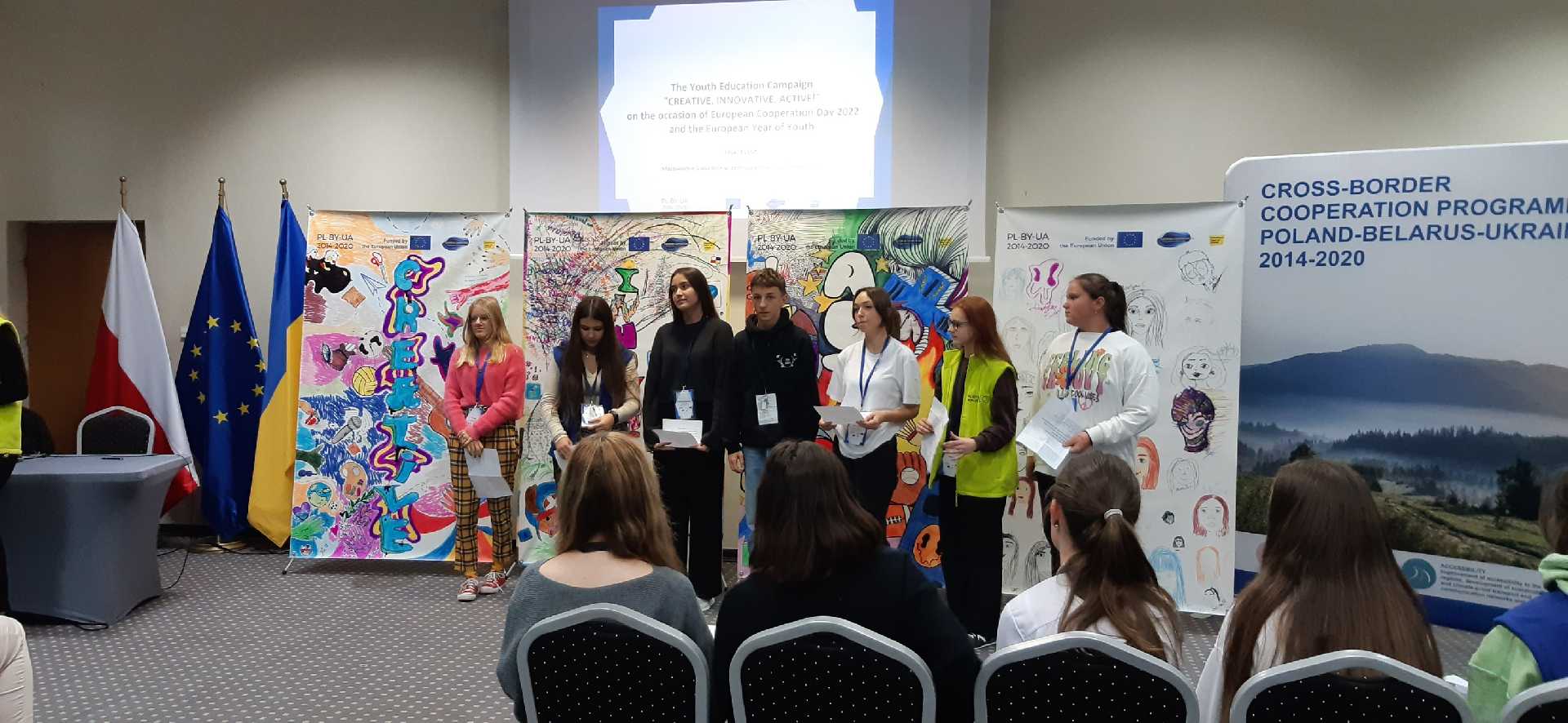Із 28 вересня до 1 жовтня члени учнівського самоврядування Гімназії №12 Запісоцька Вероніка, Мельник Вікторія, Гречушніков Віталій, Оліферович Юліана та педагог-організатор Юлія Пастух взяли участь у фіналі освітньої кампанії для молоді «CREATIVE, INNOVATIVE, ACTIVE!», організованої з нагоди Дня європейського співробітництва 2022 та Європейського року молоді, у Мазовецькому воєводстві (Польща). Організатори Програми Транскордонного Співробітництва підготували для 16 команд з України та Польщі тематичні науково-технічні та мистецькі воркшопи, майстер-класи, вікторини та екскурсії, щоб максимально сприяти освітній та культурній інтеграції молоді з прикордоння. Особливо захоплюючим був візит школярів до Представництва Європейської Комісії у Республіці Польща, де підлітки зустрілися з її представниками Євою Модзелевською та Спашиміром Домарадзкім, які розповіли про принципи функціонування Європейського Союзу та його цінності. У школярів була чудова нагода поставити саме ті запитання про Україну, які всіх нас найбільше турбують останнім часом. В останній день фіналу Анджей Слодкі, голова Спільного технічного секретаріату Програми, вручив нагороди шкільним командам та наголосив на важливості молоді у розвитку прикордоння. Усі учасники заходу отримали пам’ятні дипломи та привабливі набори призів. Щиро дякуємо Програмі Транскордонного співробітництва Польща-Білорусь-Україна 2014-2021 за щорічні цікаві та змістовні заходи!