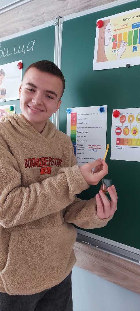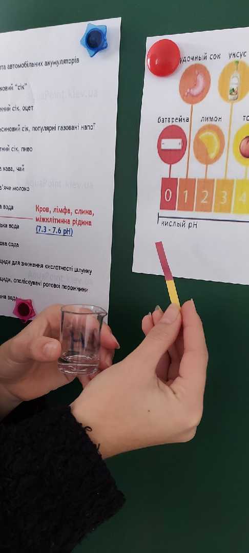 4 листопада вчителі Гімназії № 12 Наталя Романівна Мацях та Ірина Володимирівна Ящишин провели інтегрований урок "рН середовища в науці та житті". Разом з учителями учні 9-А класу дослідили значення рН слини, сльози та продуктів харчування, дослідили, як впливає харчування на активність ферментів.