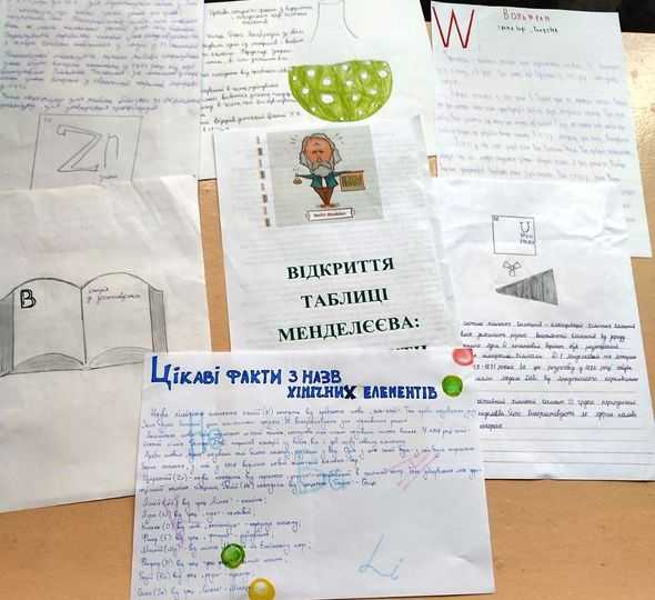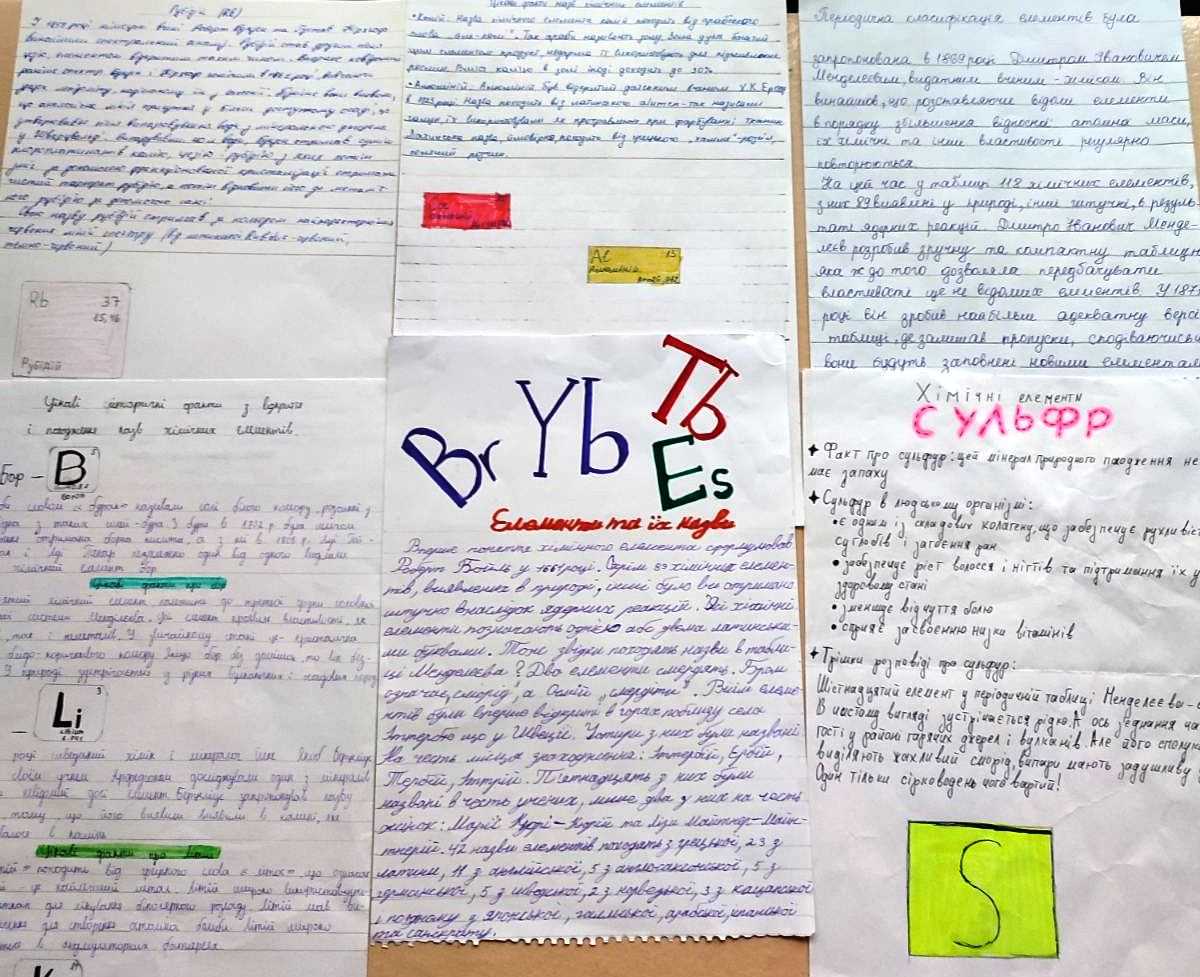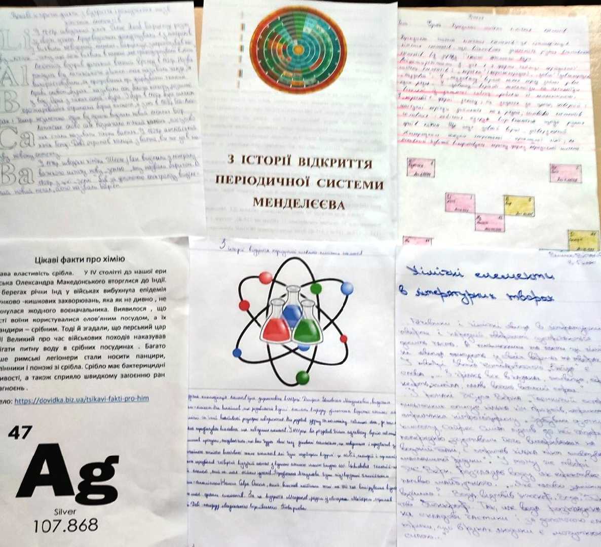 Учні 8-их класів працювали над проєктами з хімії: "Цікаві факти з відкриття і походження назв хімічних елементів", "Форми періодичної системи", "Історія відкриття періодичної системи" та "Хімічні елементи в літературних творах".