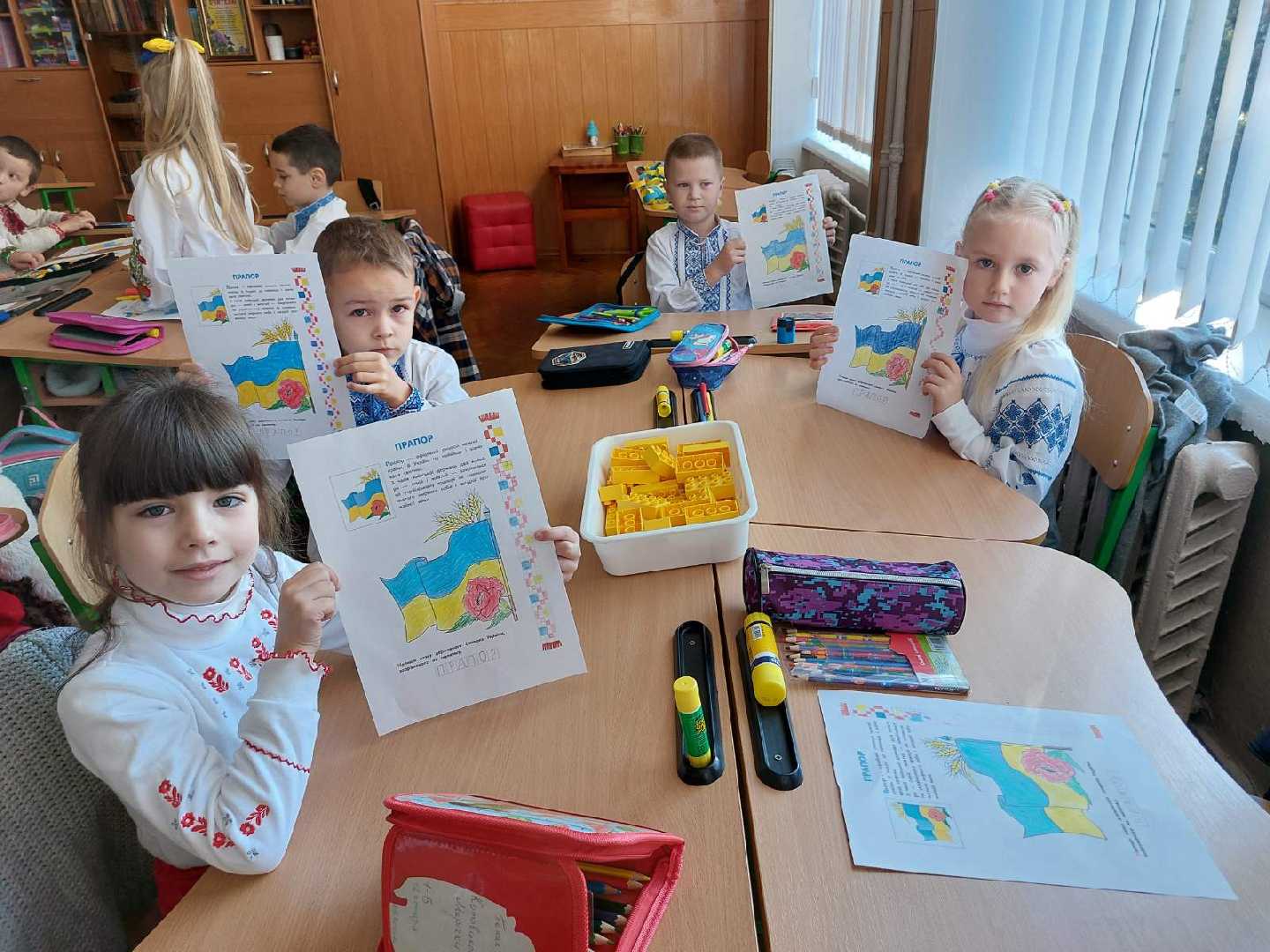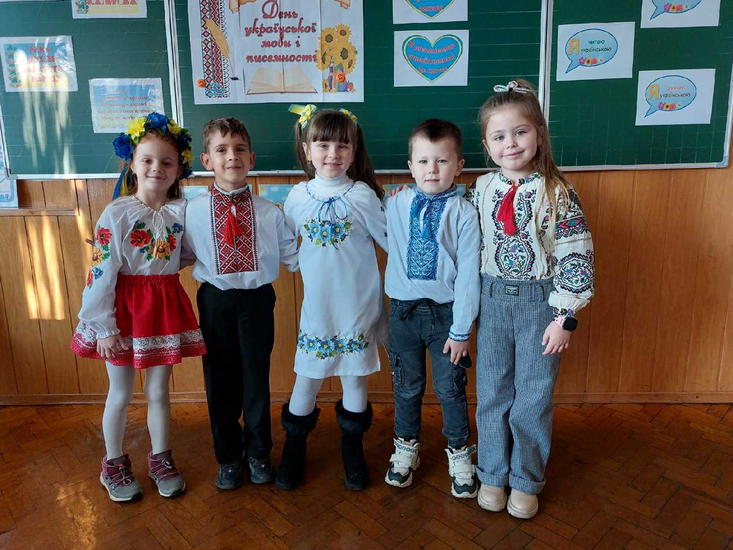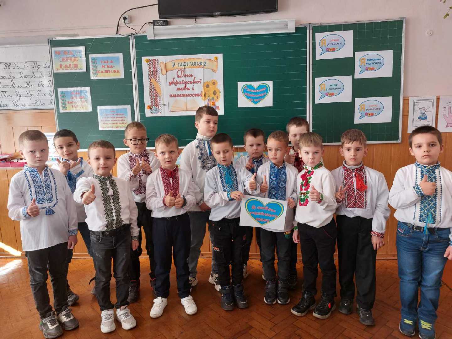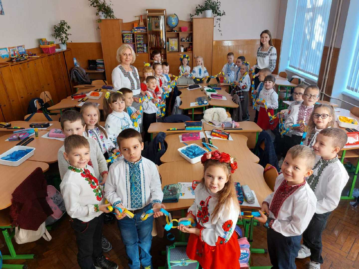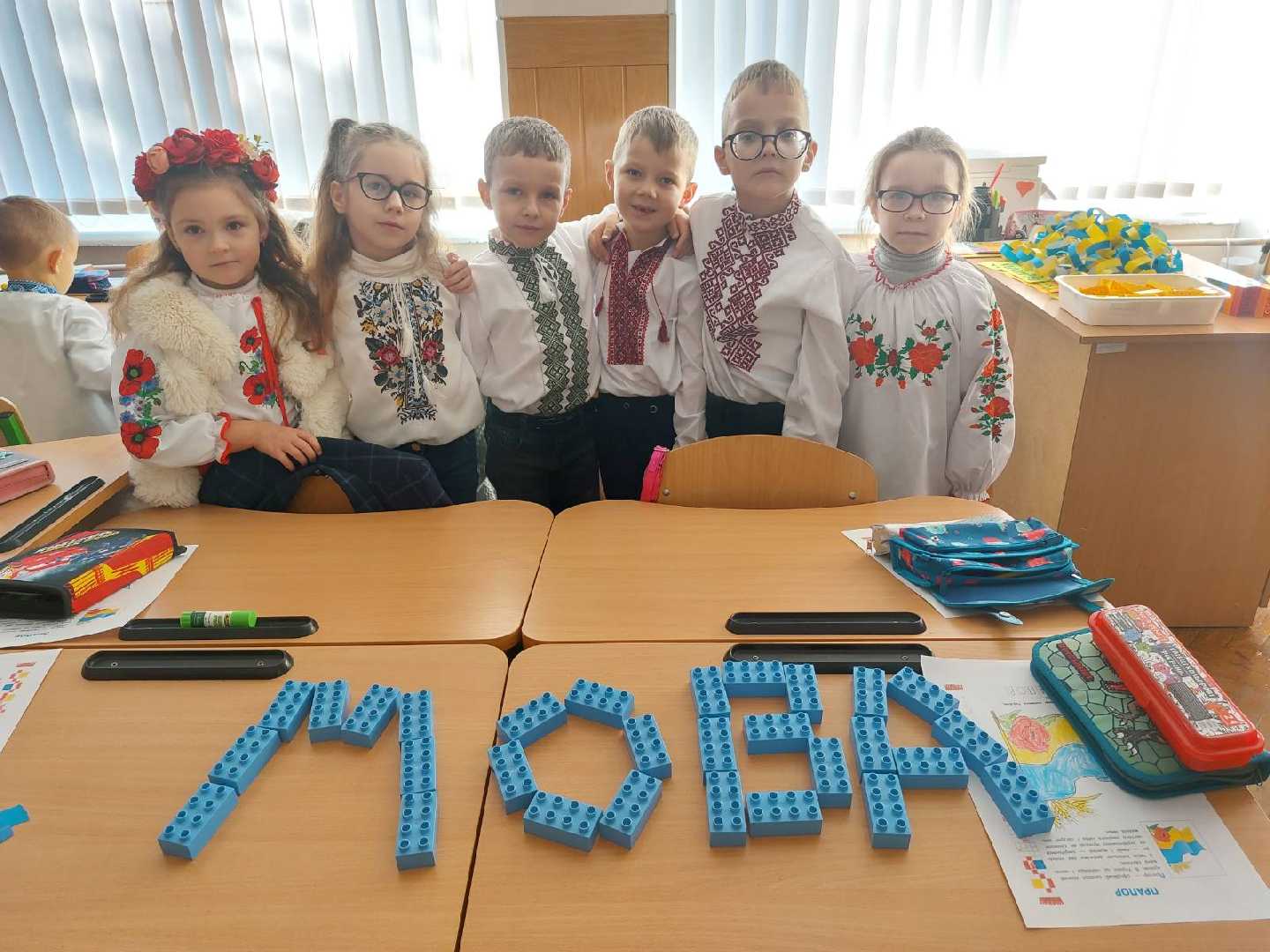 Сьогодні, у День української писемності та мови, учні 1-Б класу (учитель Пшик Г.Я. та асистент учителя Ахтянкіна К.А.) дивилися казку про українську мову, декламували вірші, вчилися говорити "компліменти" нашій мові, малювали українські символи, працювали в групах з цеглинками лего та створили патріотичний ланцюжок єдності, який добре демонструє, як українська мова об'єднує всіх українців.