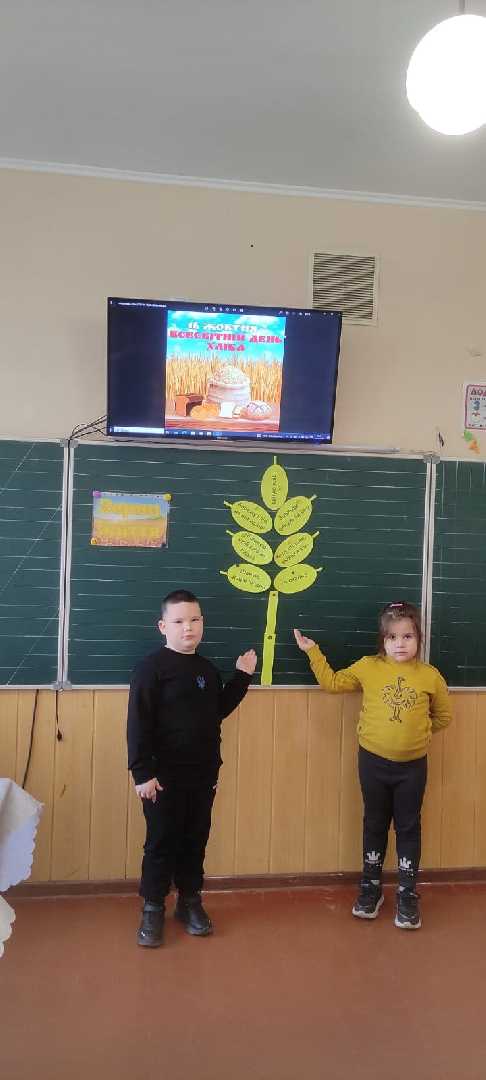 У Всесвітній день хліба учні 1-В класу (учитель Сьомкіна Н.А.) добре запам'ятали, що хліб-народне багатство.