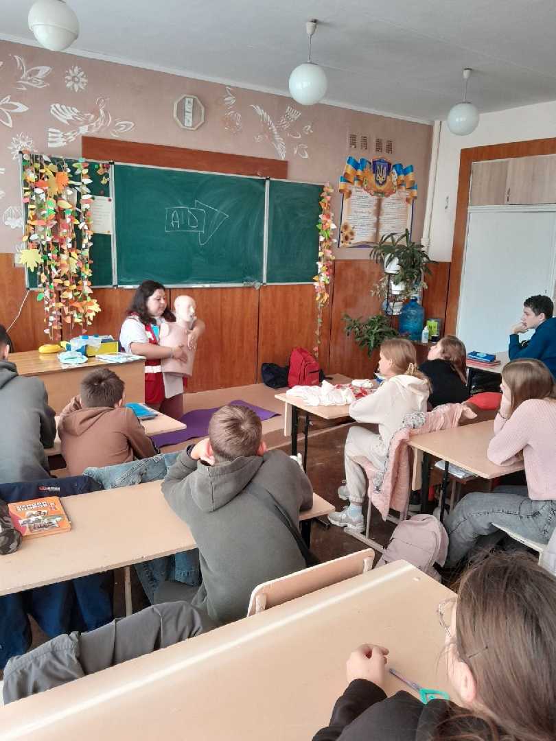 Учні 8-их класів на уроці основ здоров'я ( учитель Гудим Л.С.) познайомилися з волонтером міської організації Червоного Хреста Гнатів Т.В., яка розповіла школярам про правила надання домедичної допомоги, а також про перші дії при пораненнях та опіках. Учні мали змогу пропрацювати кроки надання першої допомоги на манекені, а також вчилися накладати джгути та пов'язки. Бажаємо учням, щоб канікули були веселими та безпечними.