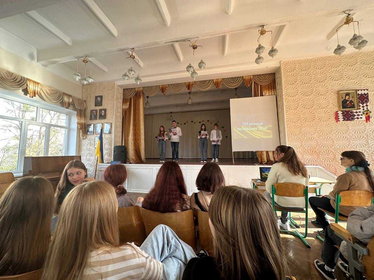 До 105-ої річниці проголошення ЗУНР учні 8-Г класу та класний керівник Гаган Н.І. підготували та провели захід "Події, що змінили нашу історію" . Школярі згадували буремні події 1918 року та порівнювали їх із сьогоденням. Також щиро дякуємо Карапуді П.В. за цікаву та змістовну розповідь!
