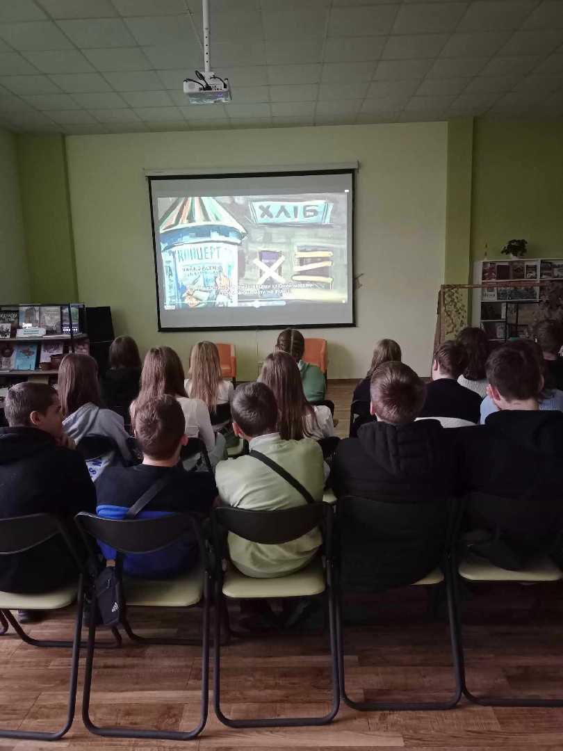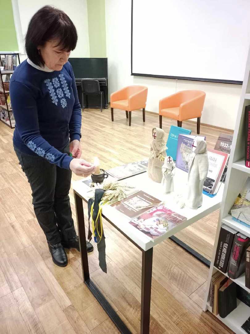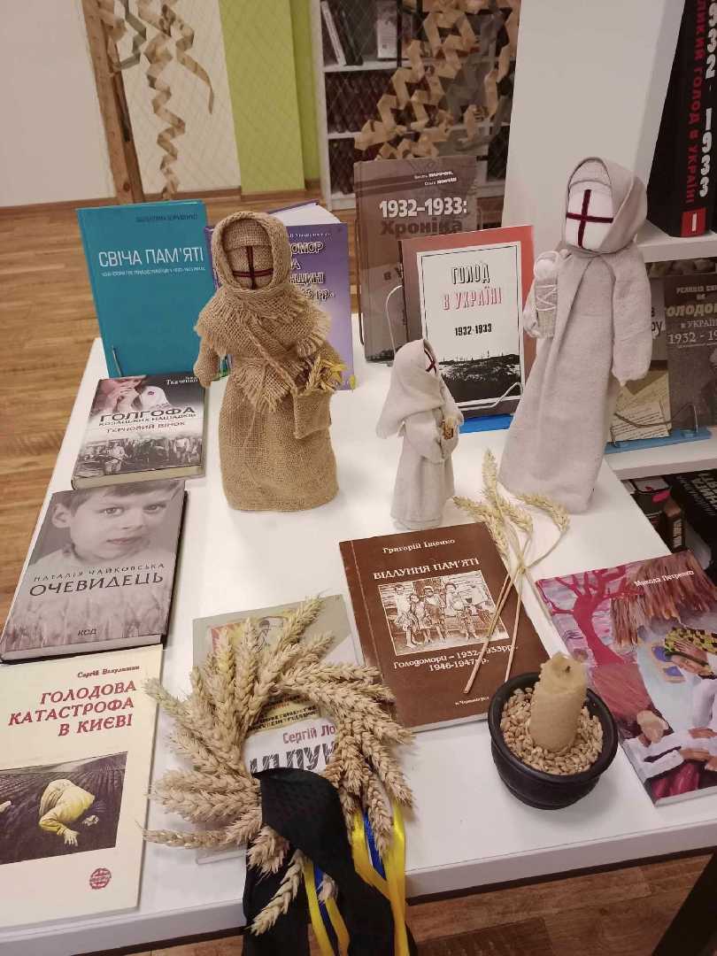 Напередодні дня вшанування пам'яті невинних жертв Голодомору 1932-1933 років та масових штучних голодів 1921-1923 і 1946-1947 років у бібліотеці відбувся відеофактаж "Очима болю, вустами гніву" з учнями 9 класу гімназії 12 (кл.керівник Мацях Н. Р.), який включав показ документального фільму "Голодомор: голоси свідків", презентацію виставки - інсталяції "Голод в Україні: мовою документів, очима істориків та письменників", експозицію ляльок мотанок Ірини Пархоменко "Колоски болю". Діти вшанували пам'ять жертв Голодомору хвилиною мовчання і запалили свічу????️.
