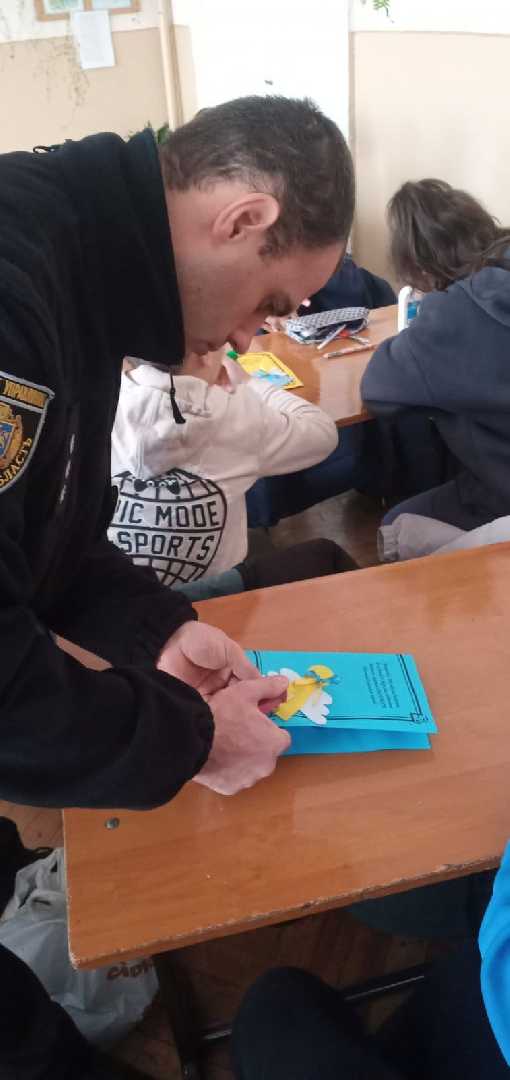 Напередодні найулюбленішого свята всіх малят учні 5-Г класу ( класний керівник Дилин Н.О., асистент учителя Грабовська Л.Я.) разом із інспектором сектору ювенальної превенції Максимом Орисюком взяли участь в акції " Подаруй Миколая воїну" та виготовили святкові листівки. Школярі побажали Захисникам міцного здоров'я, незламного духу та якнайшвидшої Перемоги!
