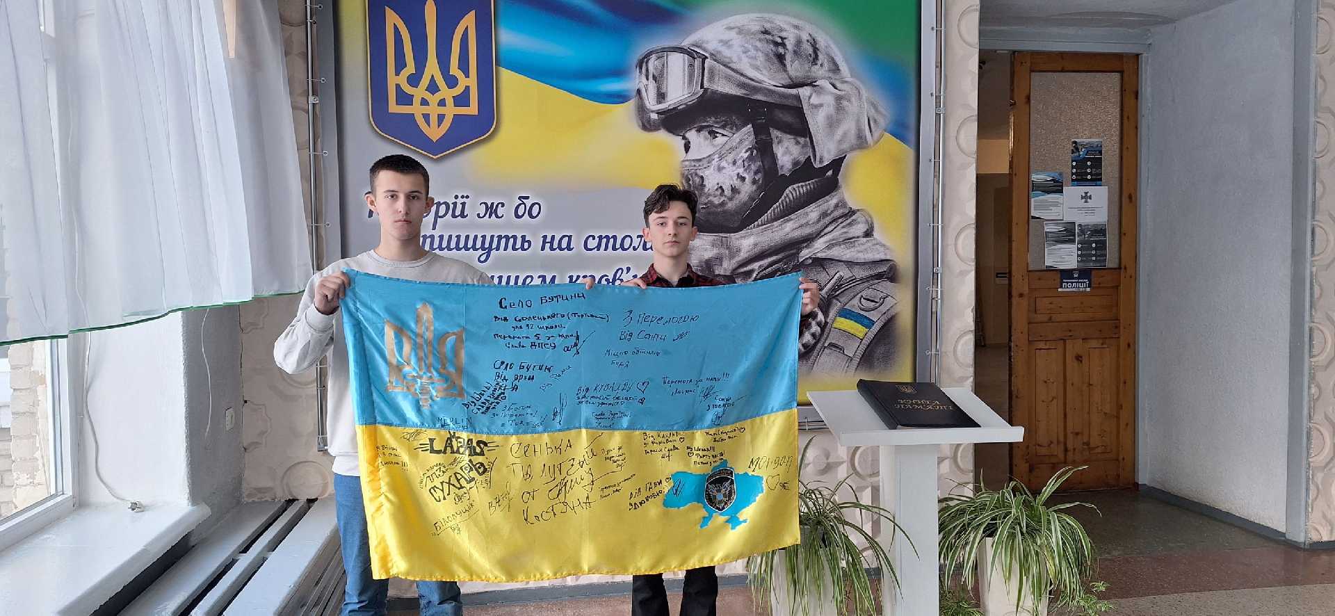 Щиро дякуємо нашим педагогам, а також учням та батькам 3-Б (учитель Бац В.І.), 4-Б ( учитель Мілєвич О.В.), 6-Г (класний керівник Буджерин Л.В.) та 7-Б ( класний керівник Гудим Л.С.) класів за придбані підсумки, термоси, а також солодкі гостинці для нашого випускника Назара Шиманського та його бригади. На знак подяки Воїни передали Гімназії 12 бойовий прапор. Маленькими кроками до великої Перемоги!