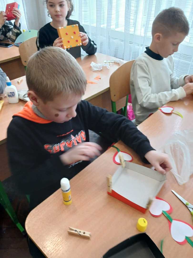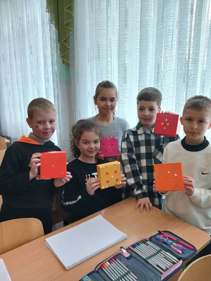 7 лютого в 3-Б класі (учитель Бац В.І.) відбувся майстерклас із виготовлення декоративної коробочки з сюрпризом своїми руками, який провела Любов Ящун.