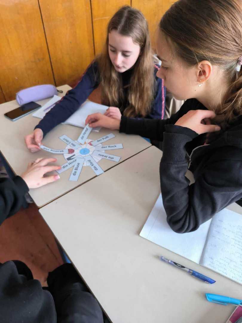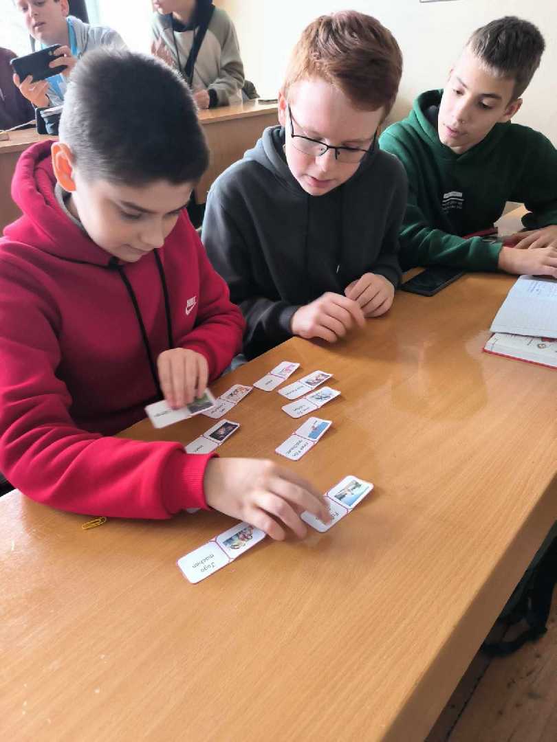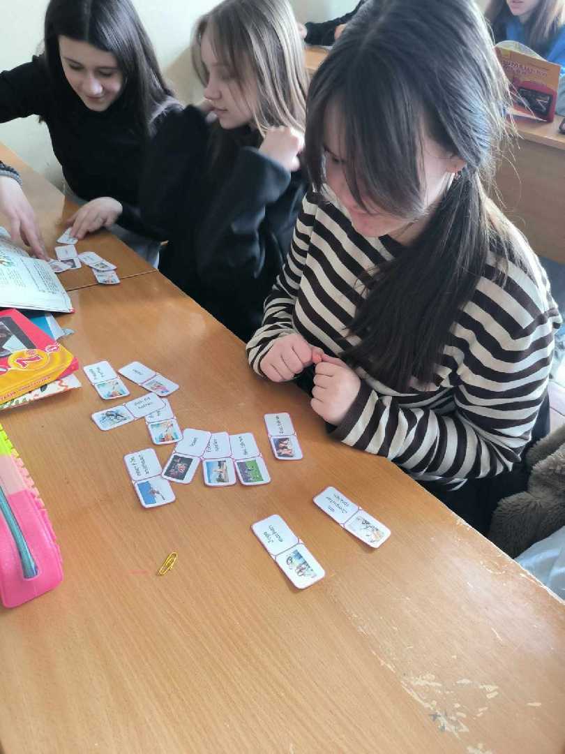 Під час Тижня іноземних мов учитель німецької мови Шеремета І. М. провела для школярів гру "Schritt". Учні, працюючи в групах, розвивали свої комунікативні навички, виконували різноманітні вправи для збагачення лексичного запасу, використовуючи гру "Доміно" та інтерактивні вправи.