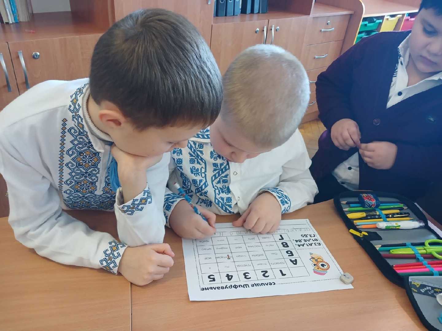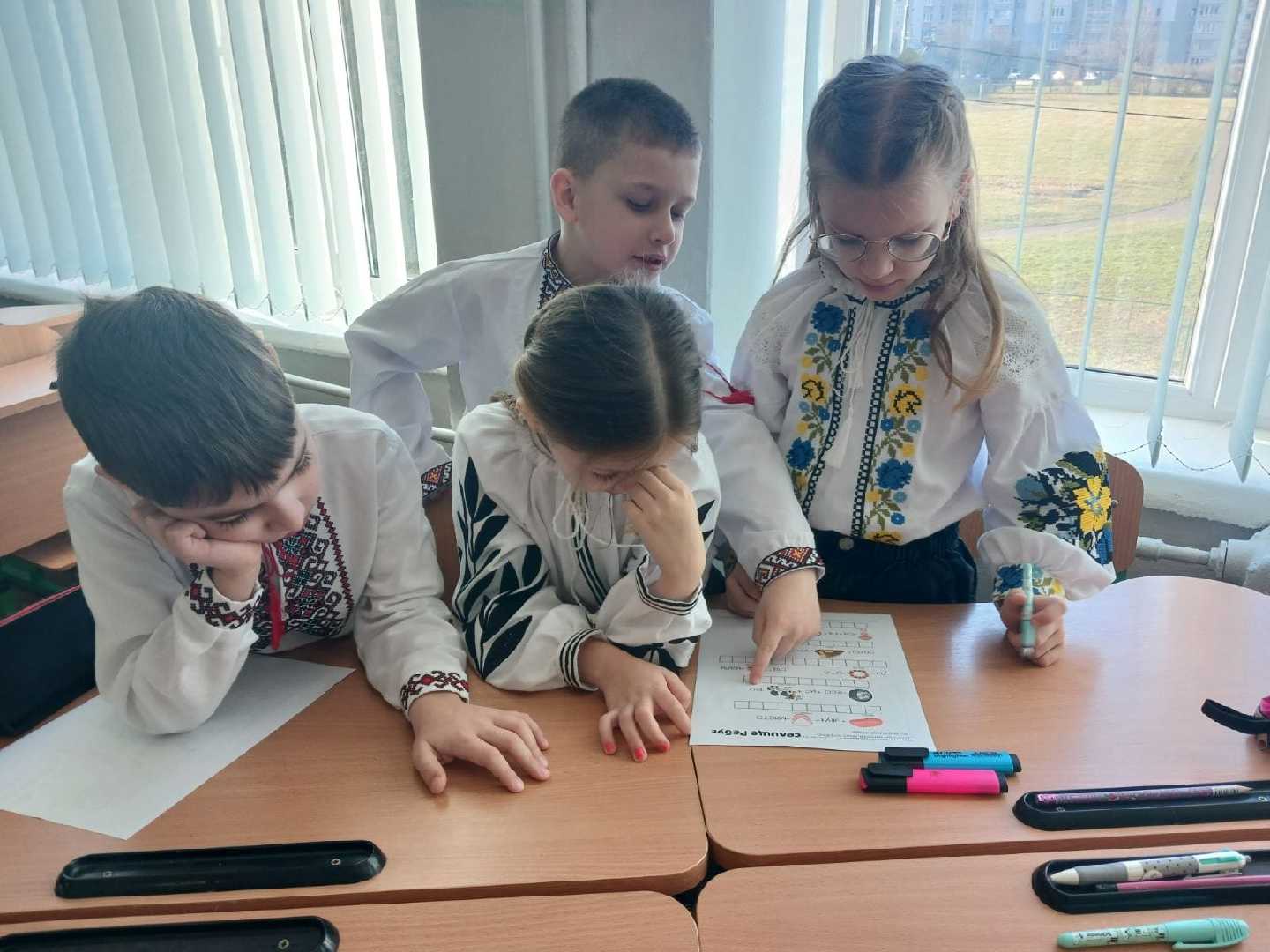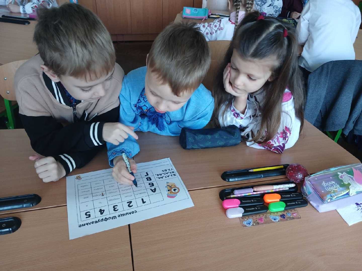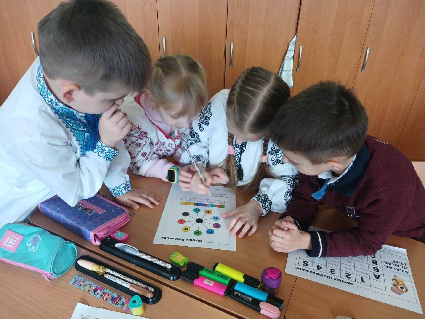 У День рідної мови учні 1 - А класу ( учитель Кагуй І.О.) подорожували до країни Мовокрай разом із паном Олівцем. Розгадували ребуси, розшифровували закодовані прислів'я, відгадували кольорові слова і шукали відповіді на питання- квіточки.