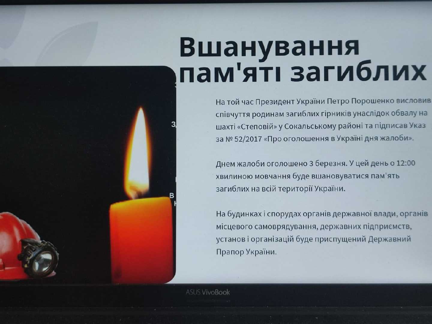 2 березня учні 9-Б класу з класним керівником, учителем хімії Мацях Н.Р. провели урок пам'яті. Гудим Маркіян підготував презентацію про трагедію на шахті Степова, яка сталася 7 років тому. Покидко Вікторія показала відеоролик про горіння вибухонебезпечного метану. А також учні вшанували хвилиною мовчання сімох загиблих шахтарів.