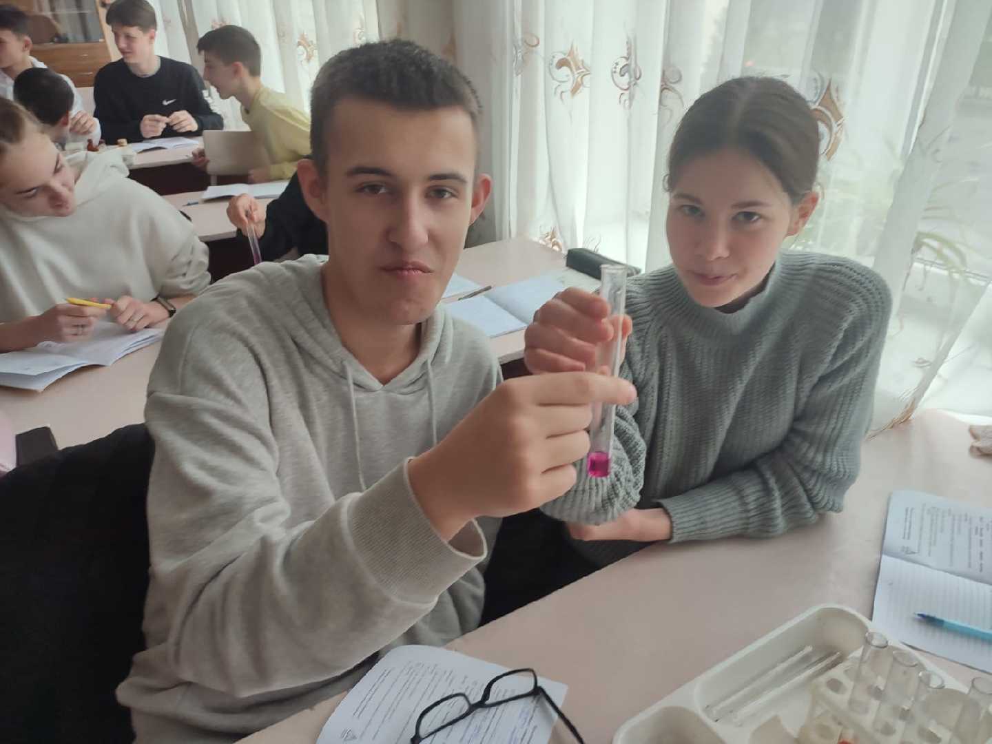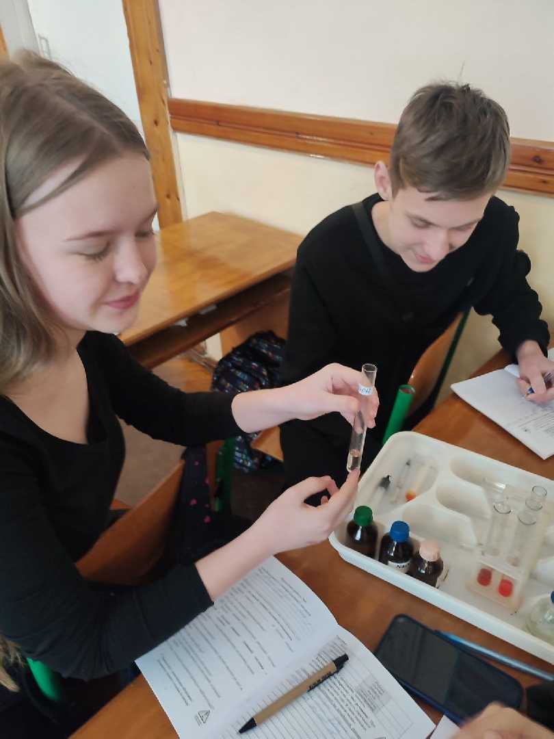 Учні 9-их класів з учителем хімії Мацях Н.Р. провели практичну роботу "Властивості етанової кислоти." Школярі провели хімічні реакції етанової кислоти з металами, основами, солями. Нагадали правила користування хімічним обладнанням і хімічними реактивами. Завдяки проведеним дослідам діти вкотре переконалися, що хімія- це не просто формули на дошці, а сполуки, які використовуються у повсякденному житті.