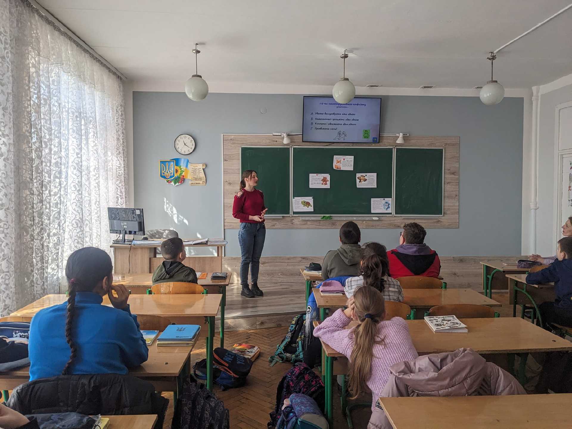 Психологічною службою, для підвищення рівня знань щодо проблем, повʼязаних з насильством з учнями 8-Г класу була проведена карткова ігрова методика «Коло безпеки» на тему «Загальні поняття про насильство». Учні розглянули основні форми та особливості насильства та жорстокого поводження з дітьми, а також запобігання йому.