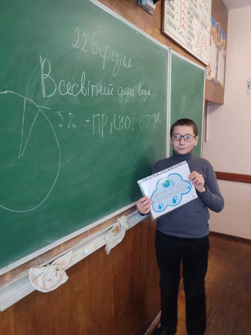 До Всесвітнього дня води, що відзначають 22 березня, учитель образотворчого мистецтва Гудим Л.С. та вчитель хімії Мацях Н.Р. провели цікаві інтегровані уроки. Учні малювали ментальні карти про воду, її значення для людини, бережливе ставлення до цього ресурсу. На хімії ж дізналися, що у природі лише 3% прісної води. А також що вода є універсальним розчинником. Провели цікаві досліди.