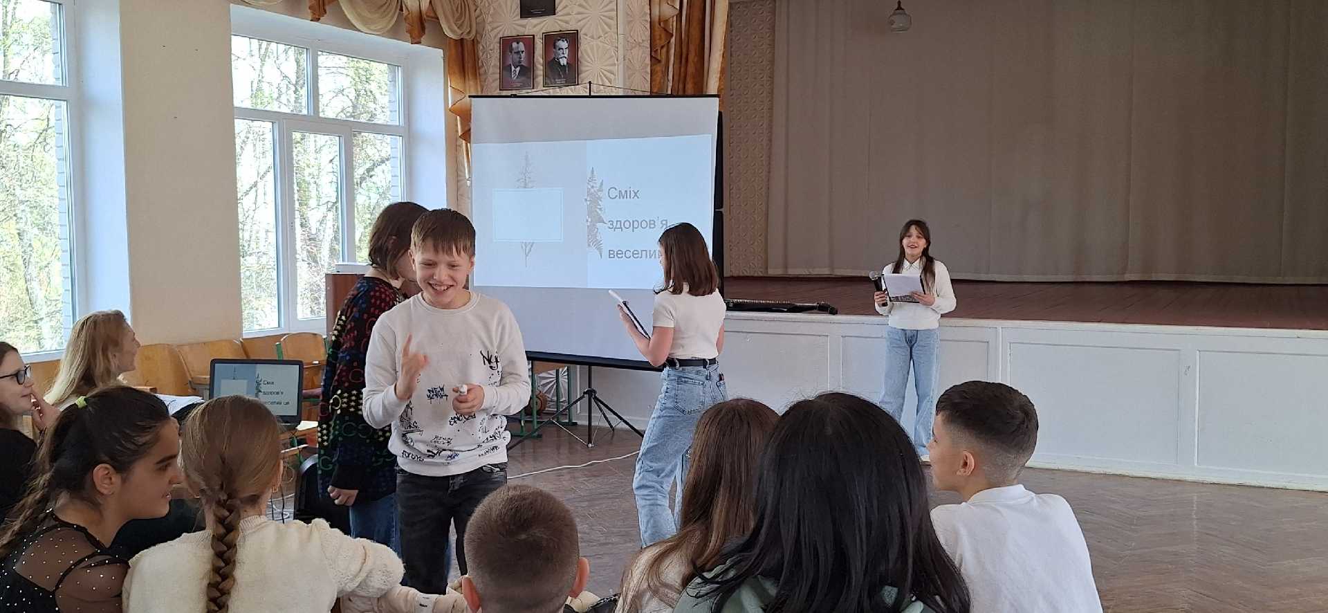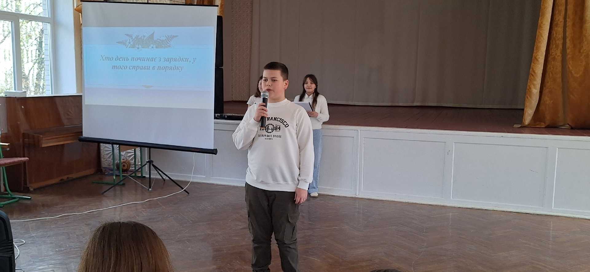 Сьогодні учні 5-Б класу (класний керівник Балас Г.І.) провели захід "Ми за здоровий спосіб життя". Школярі поділилися рецептами здоров'я, провели вікторину, за яку найкмітливіші гості на заході отримали корисні нагороди- вітаміни, разом з усіма присутніми зробили руханку, а ще подарували веселий настрій, який є складовою психічного здоров'я.