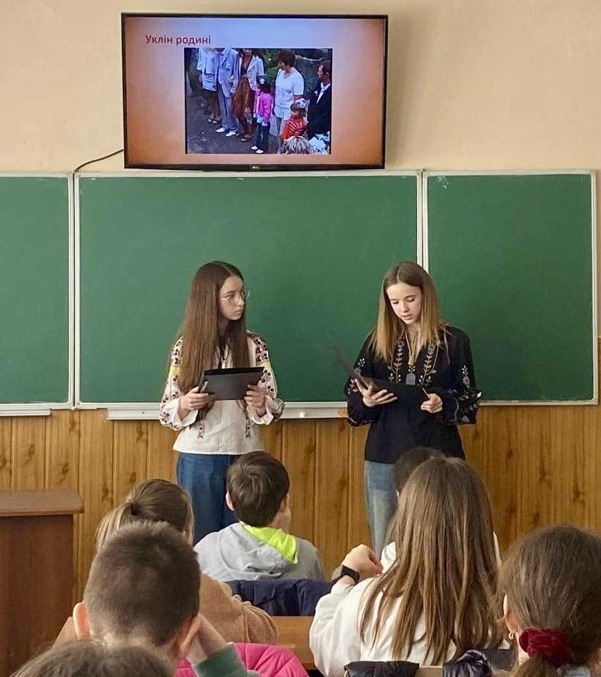 #ШколаПроєктів Учні 7-Г класу ( класний керівник Пацалюк О. Д. ) презентували свій проєкт «Весільні обряди та звичаї рідного краю» учням 5-А, 6-В, 5-В та 5-Г класів. Семикласники ділились своїми враженнями, знаннями, цікавими фактами, старовинними автентичними фото, співали пісні, популяризували забуті звичаї та обряди , спонукали до відродження нашої культурної спадщини .