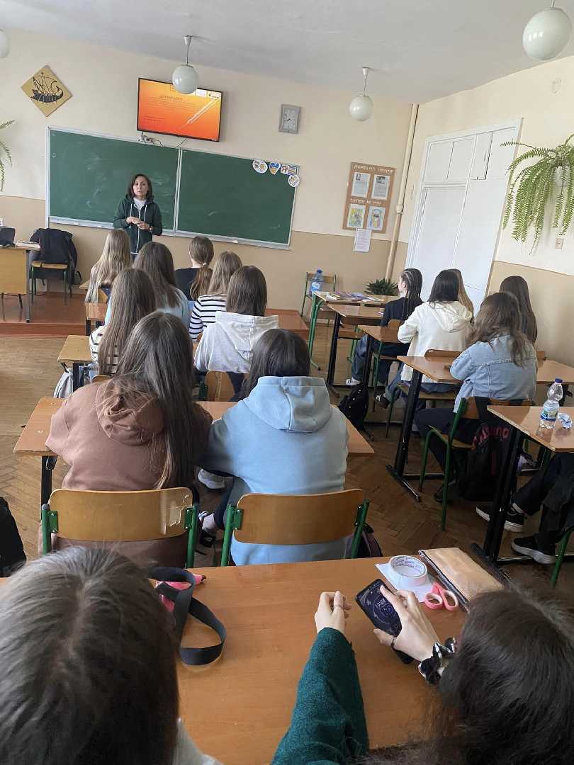 Психологічною службою, для підвищення рівня знань щодо проблем, повʼязаних з насильством з учнями 8-Г класу була проведена карткова ігрова методика «Коло безпеки» на тему «Загальні поняття про насильство». Учні розглянули основні форми та особливості насильства та жорстокого поводження з дітьми, а також запобігання йому.