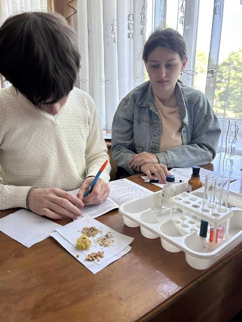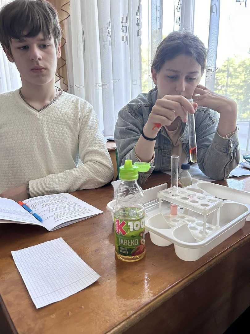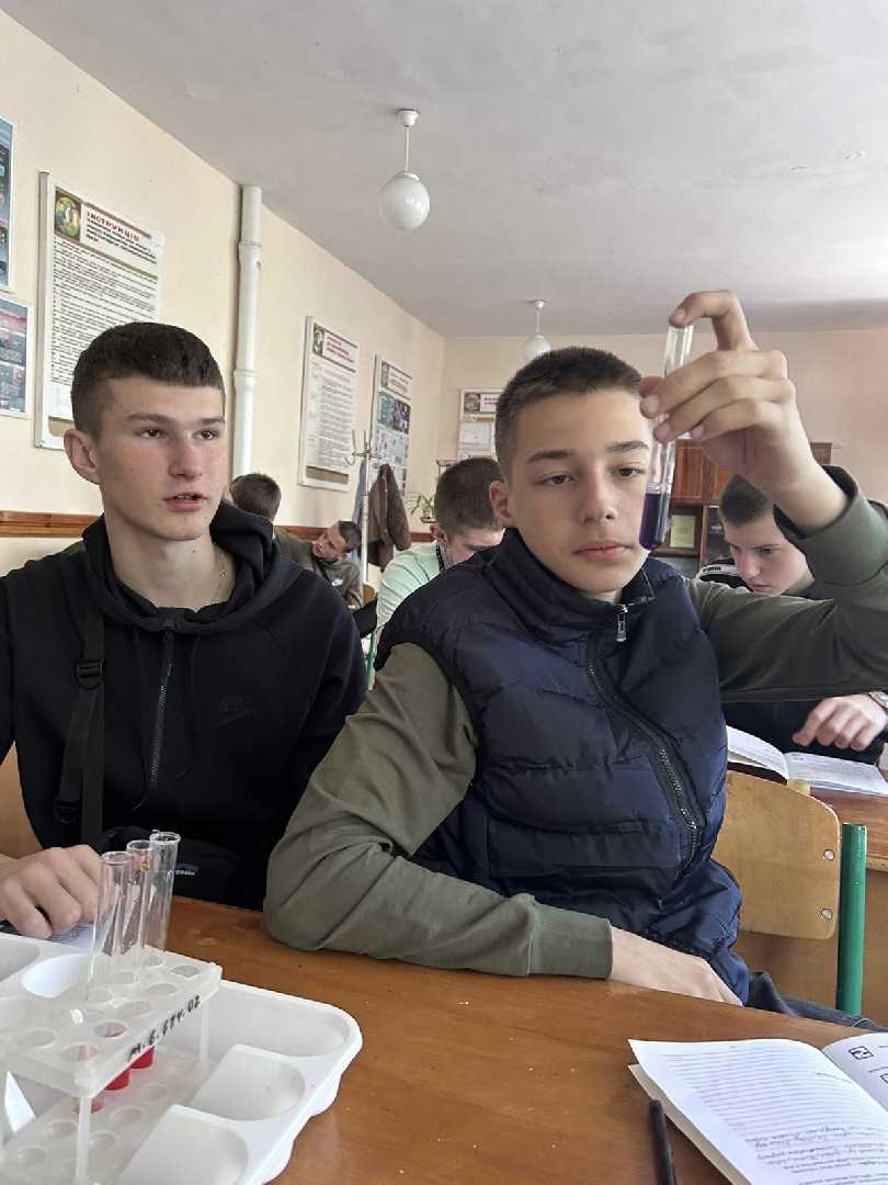 Учні 9-Б та 9-Г класів (учитель хімії Мацях Н.Р.) на практичній роботі проводили цікаві досліди. Виявляли кислоту в лимонному, яблучному соці. Досліджували виноградний сік на вміст глюкози. Зробили висновок, що виноград і виноградний сік містить велику кількість глюкози, що підвищує рівень цукру в крові.Виявляли крохмаль у рисі, хлібі, макаронах. Провели кольорові реакції на білки. Практична робота допомогла зрозуміти, що хімічні речовини є навколо нас, і необхідно мати інформацію про них, адже вони впливають на наше здоров'я.