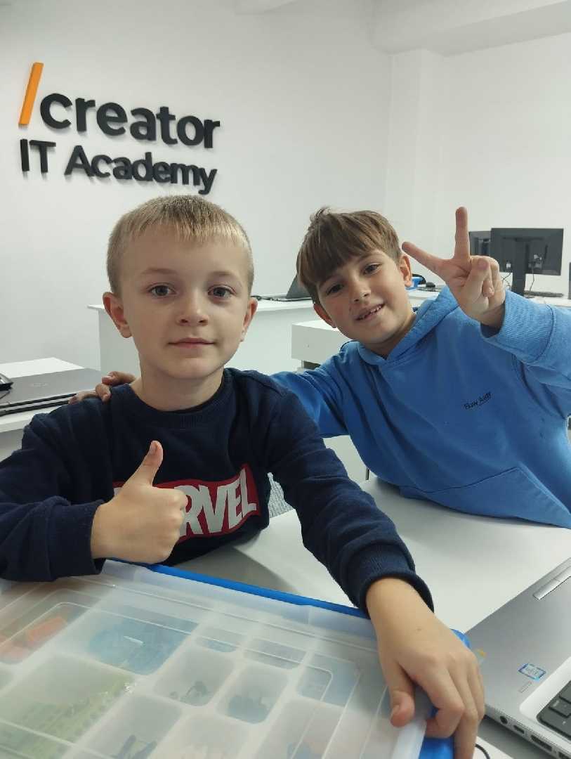 Учні початкових класів Червоноградської гімназії N12 Дуда Марк і Голінчак Дем’ян (1А), Полоцький Роман (1Б), Лакін Данило (1В), Катинський Олександр (2В), Турко Мар’ян (3В) показали успішні результати, здобувши перемогу у змаганнях з робототехніки і програмування WeDo. Діти в позашкільний час відвідували заняття в «Creator IT Academy», і зараз вже готуються до участі в обласному фестивалі «Робототехіка і програмування сьогодні і в майбутньому». За час навчання в ІТ академії маленькі дослідники не лише покращили свої знання з конструювання Lego, а й освоїли програмування WeDo, завдяки якому їхні роботи оживають: крутяться, їздять, повертають, піднімають багаж і навіть малюють! Все це можливо реалізувати на практиці за допомогою новітніх технологій, яких навчають в Академії програмування і робототехніки «Creator IT Academy». Фестиваль «Робототехіка і програмування сьогодні і в майбутньому» проходитиме за підтримки департаменту освіти Львівської ОДА та Академії програмування і робототехніки «Creator IT Academy». Учасники презентуватимуть свої творчі роботи, обмінюватимуться досвідом, а також зустрінуться з однолітками з Новояворівська, які також навчаються програмуванню WeDo. Захід відбудеться в Червонограді 9 червня 2024р. у приміщенні Навчально-практичного центру операторів цивільних безпілотних апаратів ВПУ №11, що на вул. Стуса, 3. Бажаємо учням успіхів і високих результатів не лише на фестивалі, а й в подальшому навчанні!