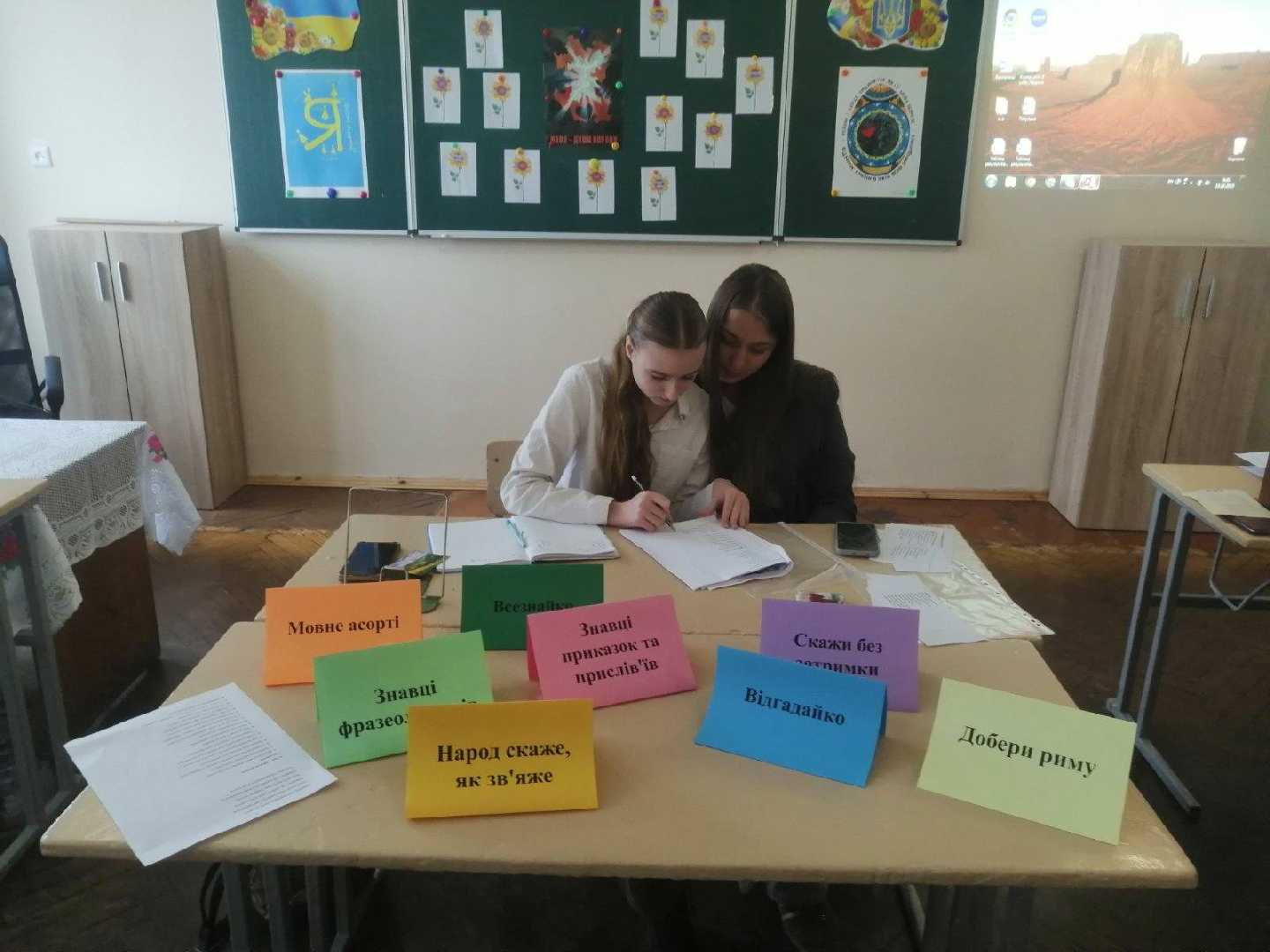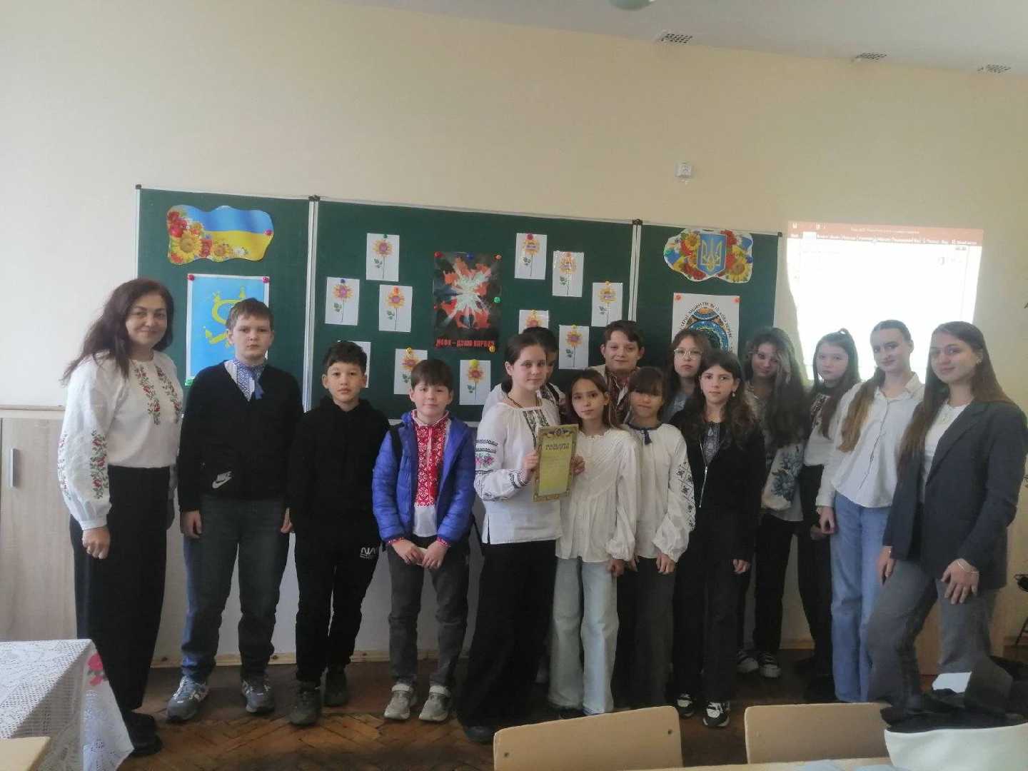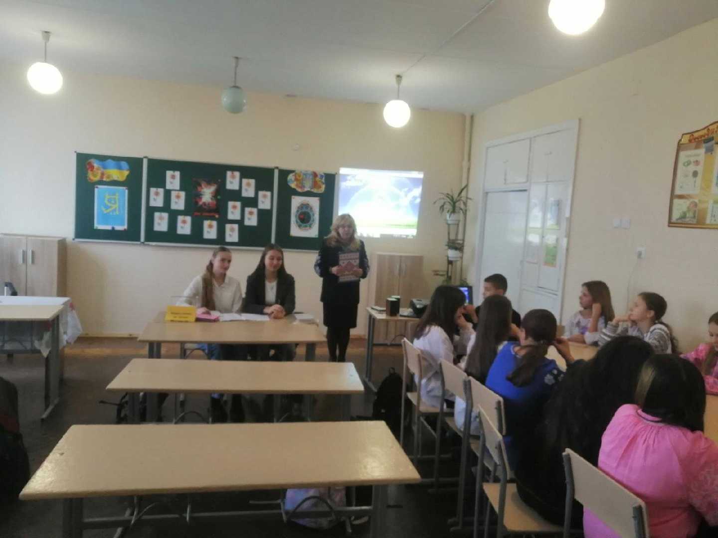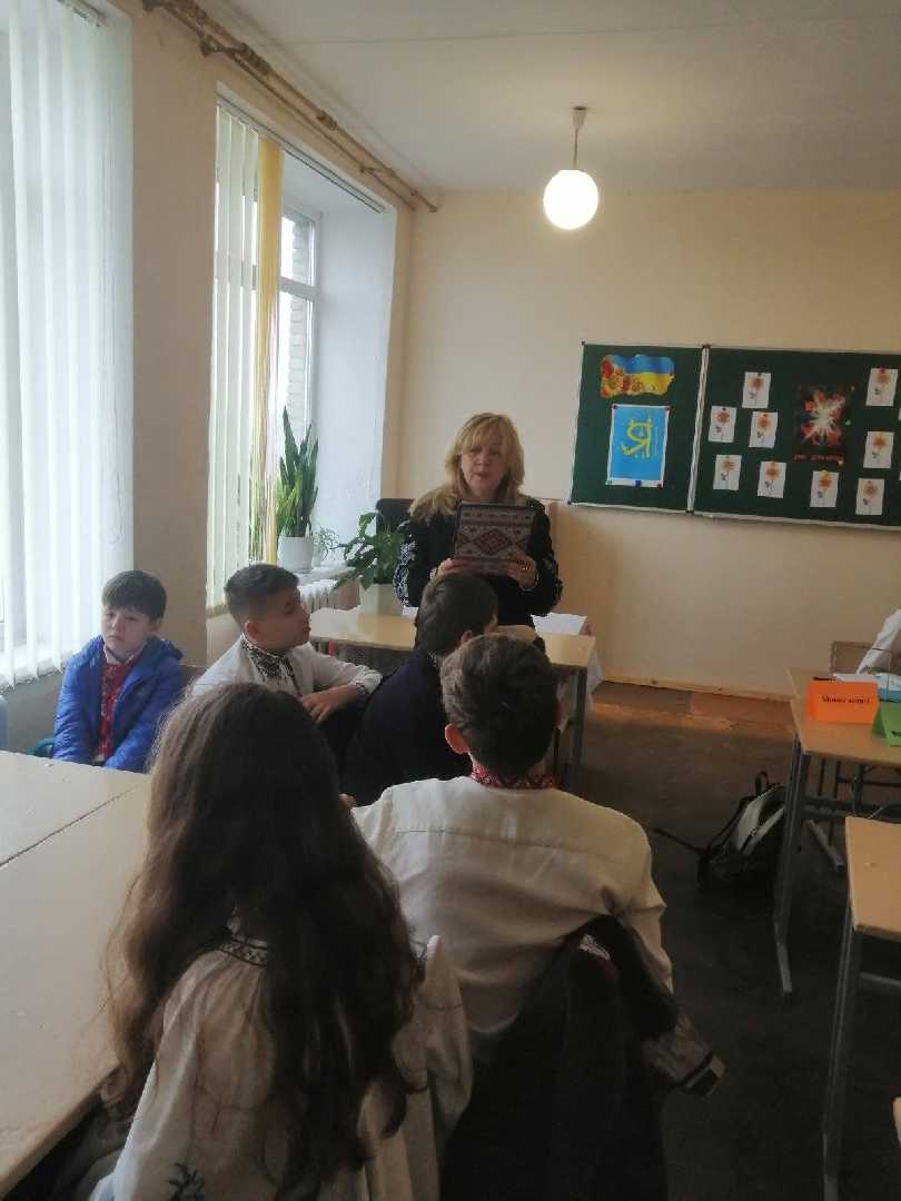 Сьогодні учні 6-Б класу (кл.кер. Романчук М. І.) разом з шкільним бібліотекарем Зубрицькою Л. провели мовну вікторину "Подорож океаном рідної мови", де учні поділились на дві команди і змагалися. Діти доповнювали прислів'я, шукали відповідники до фразеологізмів, швидко відповідали на питання з мовного асорті, а також знаходили слова до антонімів та добирали до слів синоніми, загалом вікторина була жвава та цікава. Слухали вірші та пісні про українську мову, також подивились презентацію про українську мову, вислови письменників, які любили та берегли для нас Україну та нашу мову. Наше журі, дівчата з 9-Б класу, Яна та Оксана оцінювали гру, в результаті перемогла команда "Мовні майстри", діти отримали подарунки та збагатили свої знання з української мови.