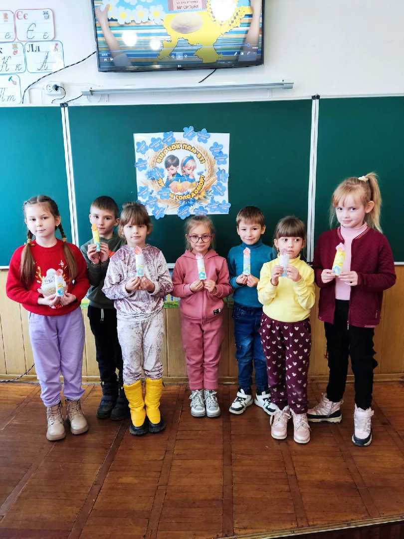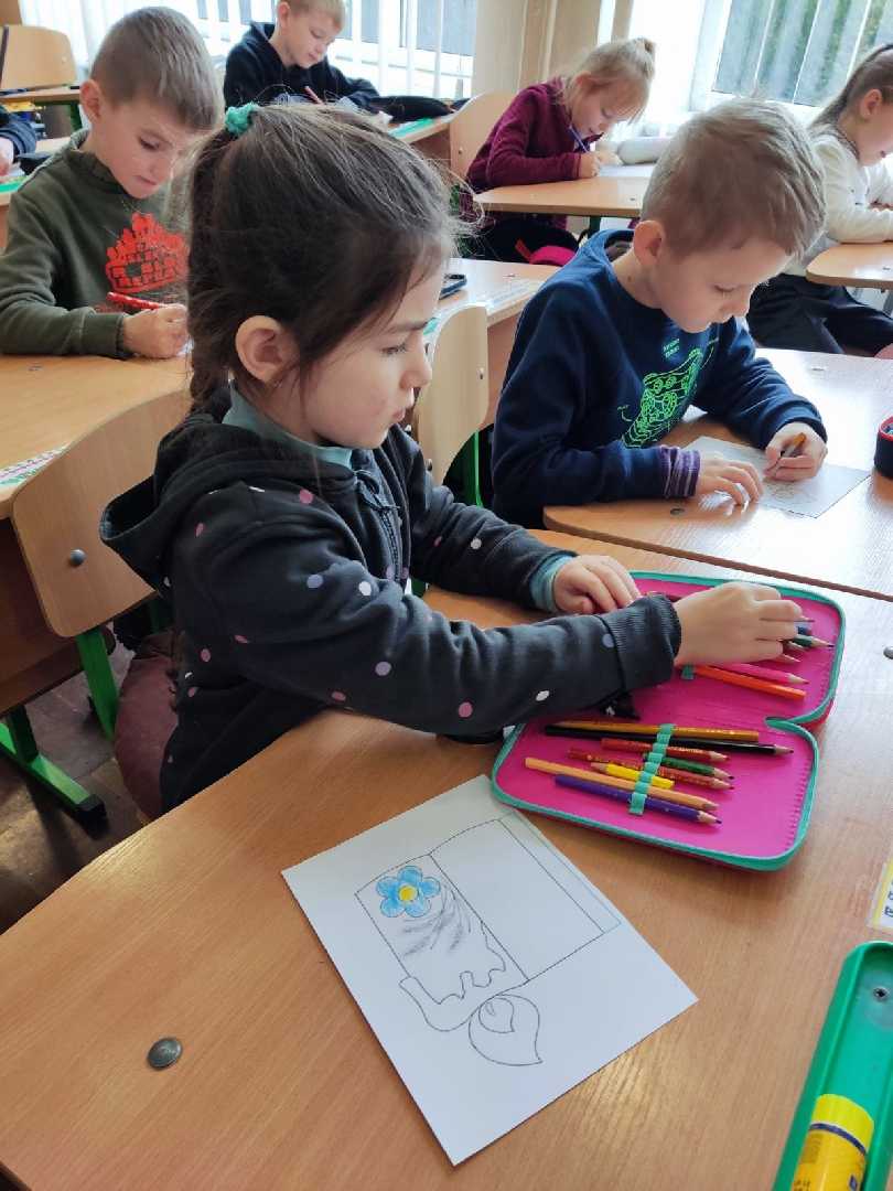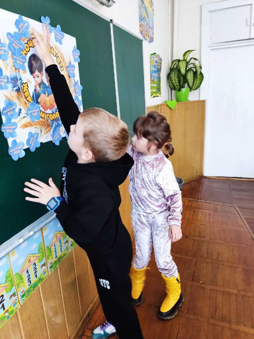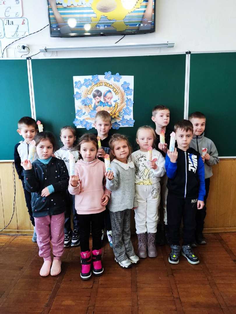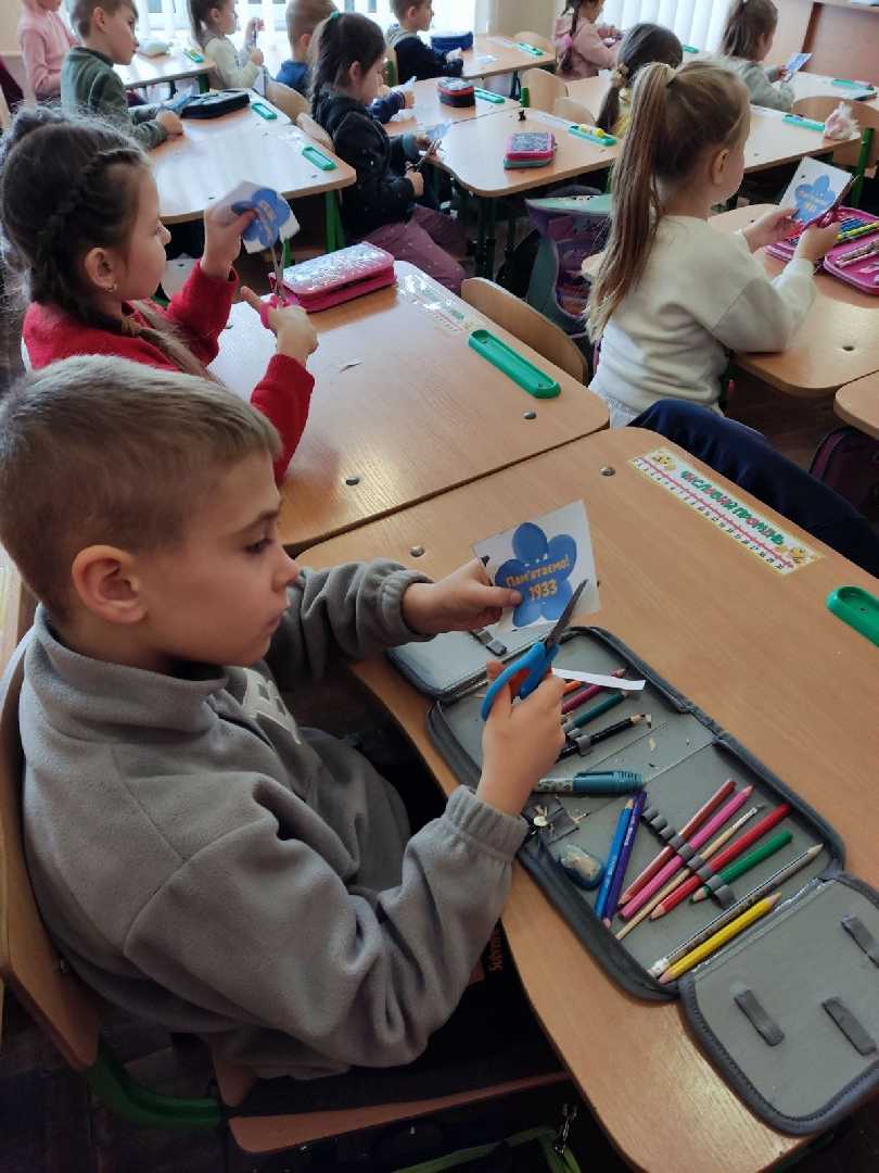 З метою вшанування пам'яті жертв Голодомору в 1-В класі ( вчитель Єдинак О.І., Піляк І.В.) відбувся виховний захід " Віночок пам'яті жертв Голодомору" Діти ознайомились з трагічним минулим нашого народу. З незабуток сплели віночок вшанування жертв Голодомору, виготовили аплікацію "Свічка пам'яті"