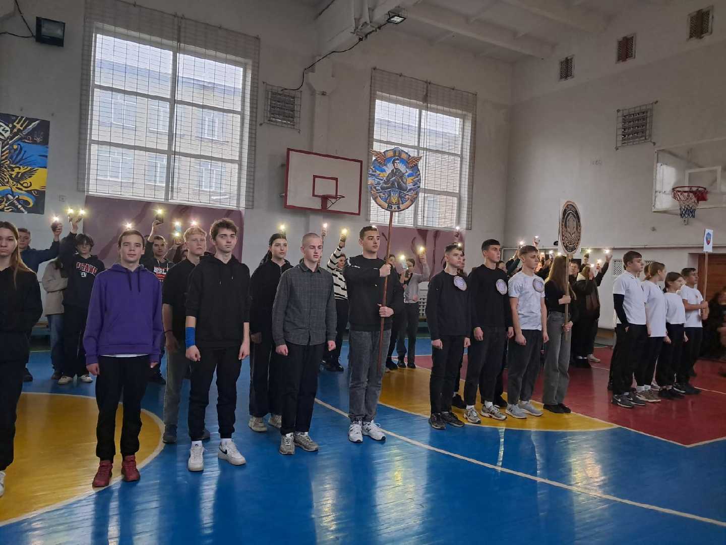 Під Марш української армії строєм до залу увійшли команди – учасники змагань. Директор ліцею Катарина І.М. привітала гостей та учнів. Хвилиною мовчання було вшановано пам’ять загиблих захисників-героїв.